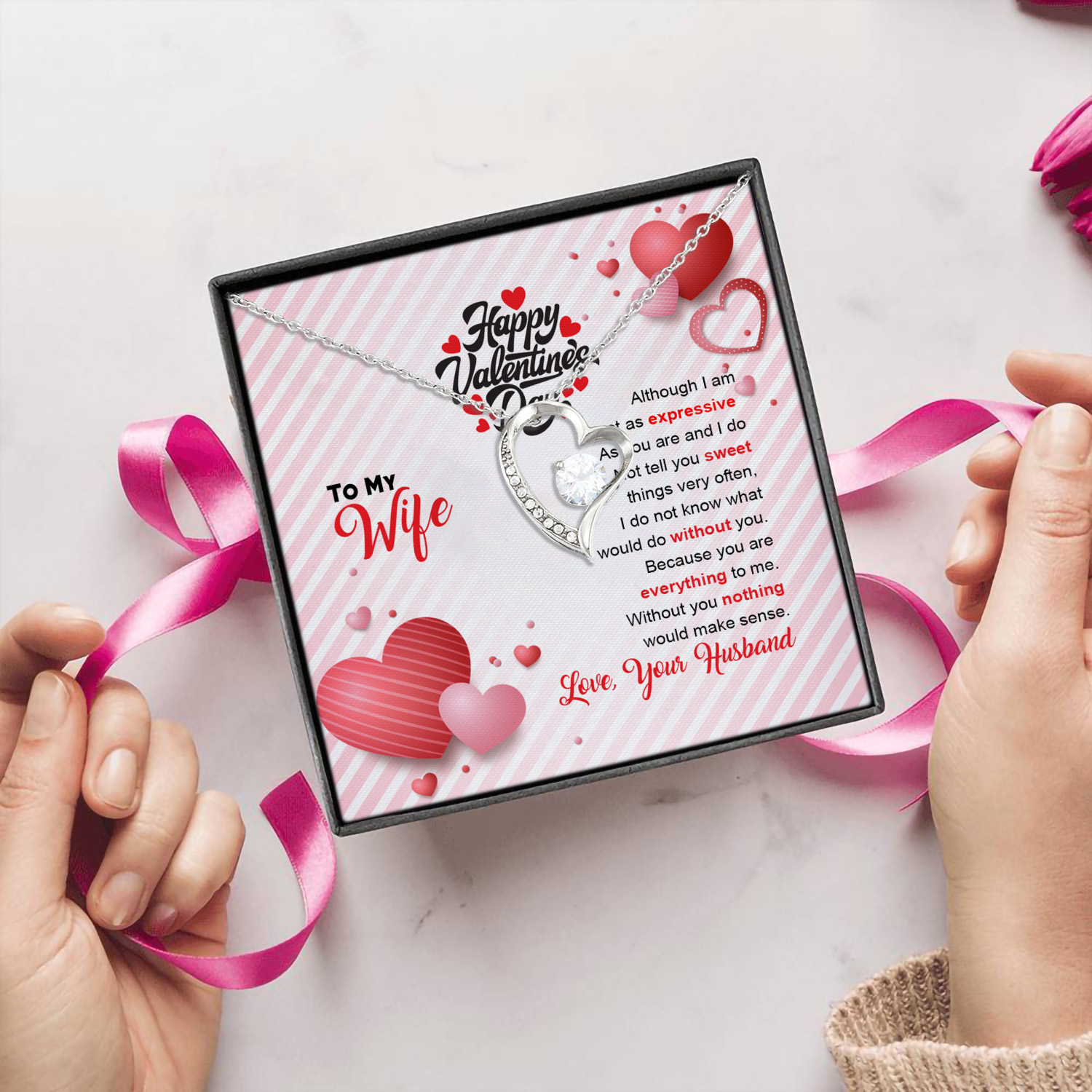 Let’s Shop Happy Valentine’s Day Husband To My Wife Although I Am Not As Expressive As You Are Forever Love Pendant Necklace!