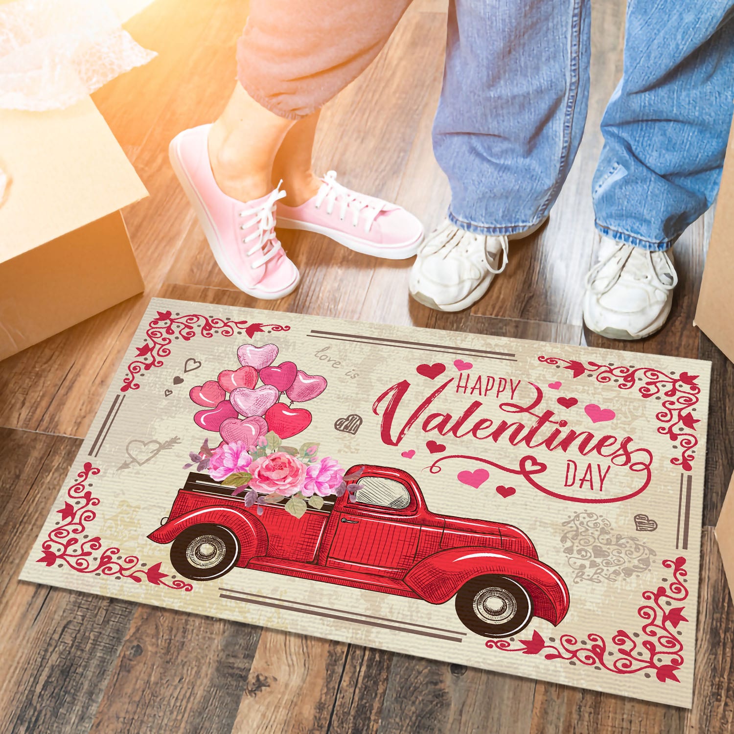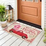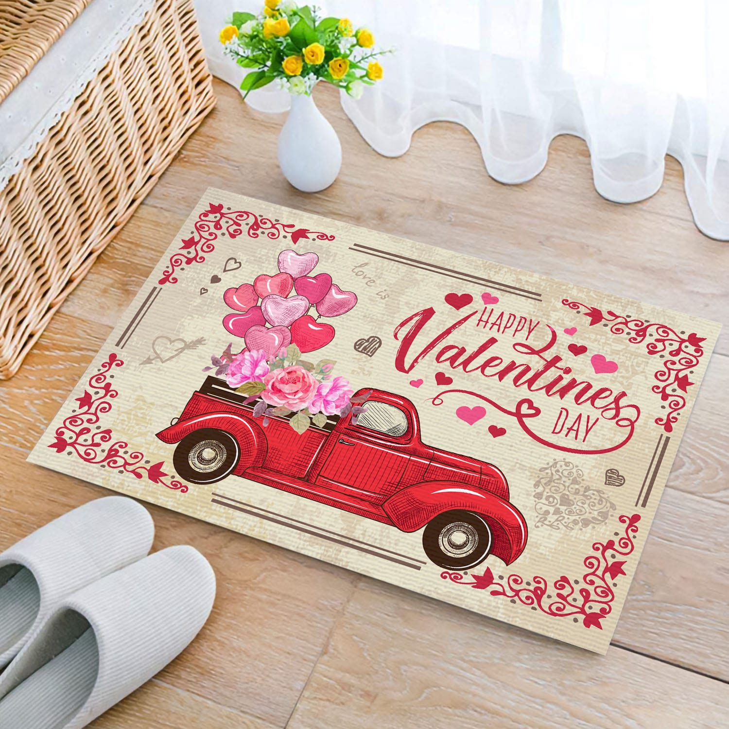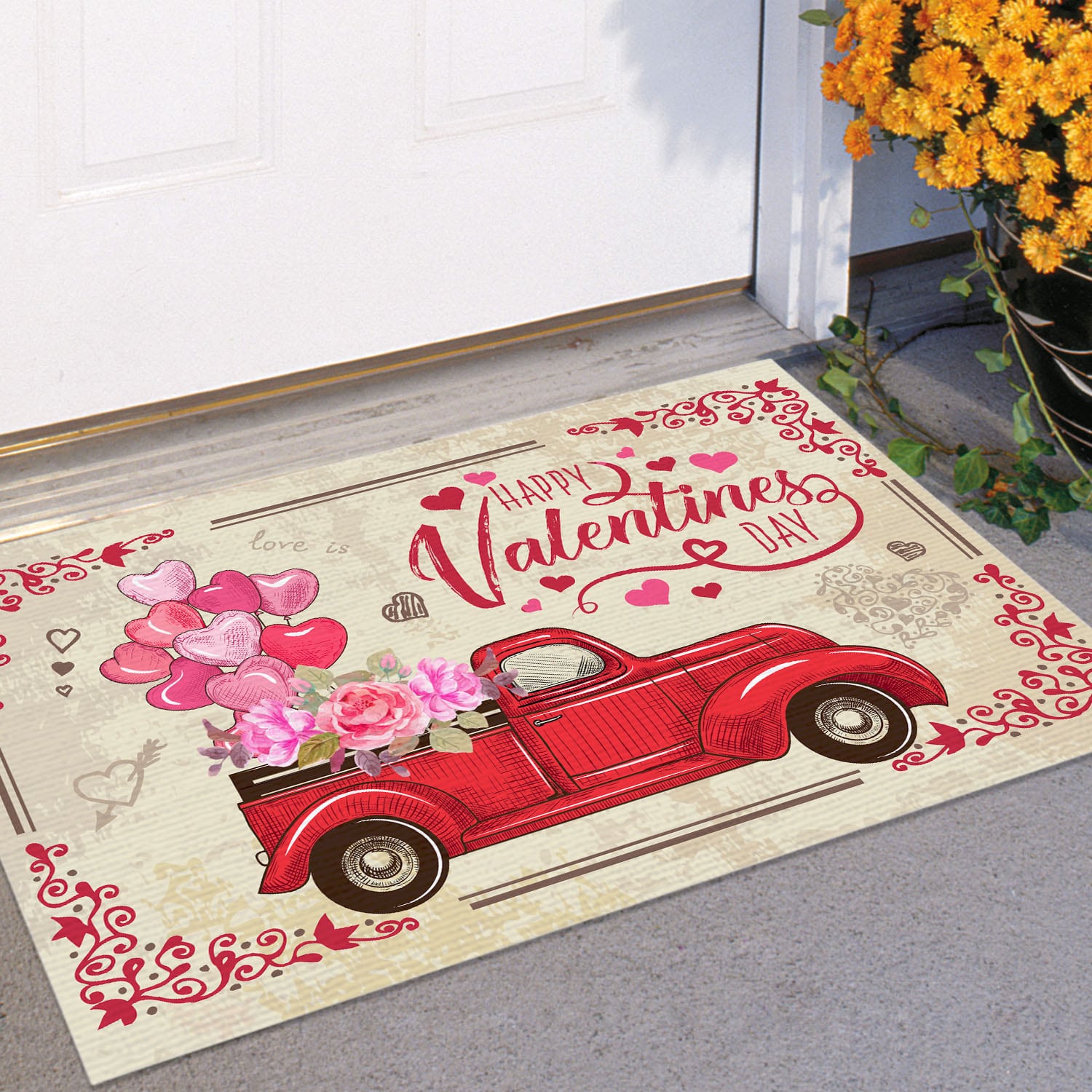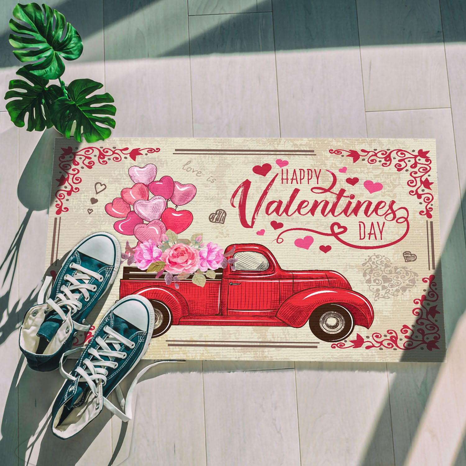 Let’s Shop Happy Valentine’s Day Red Truck Outdoor Indoor Doormat Entrance – Welcome Doormat Valentine’s Day Decoration!