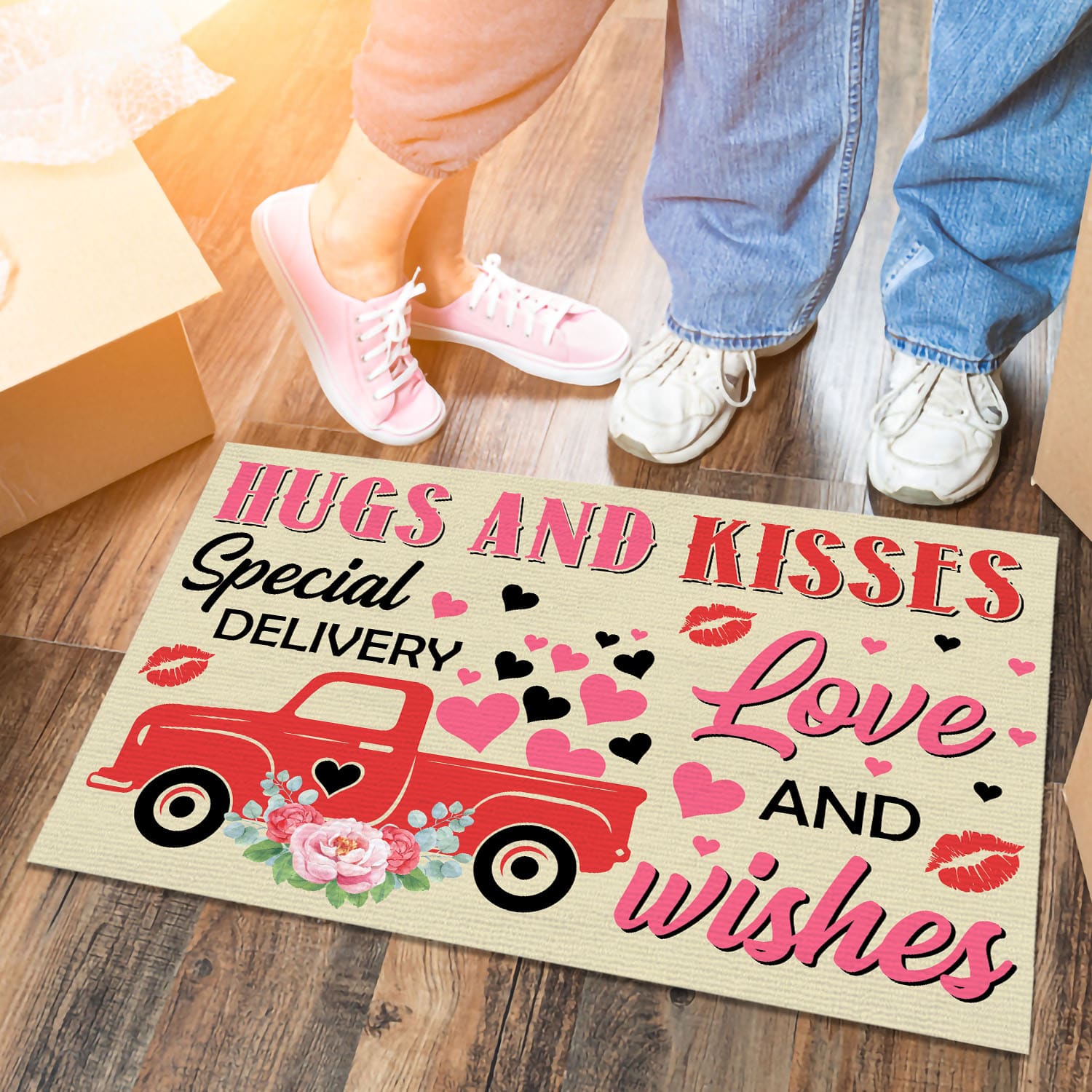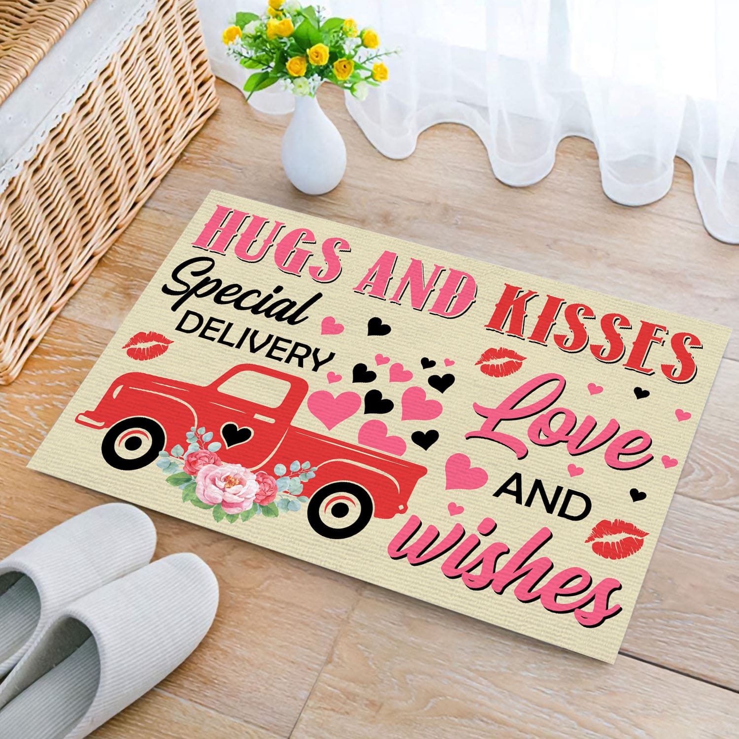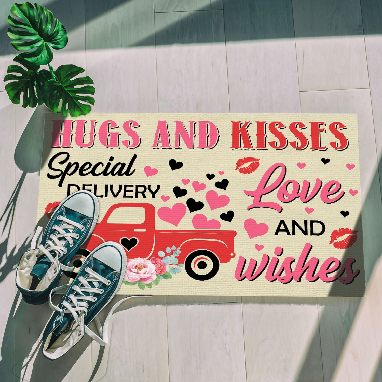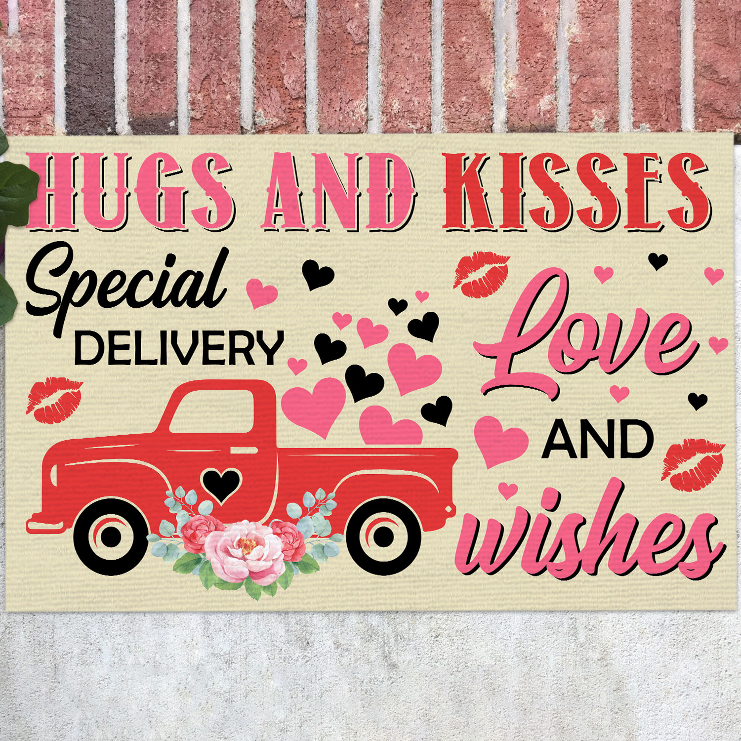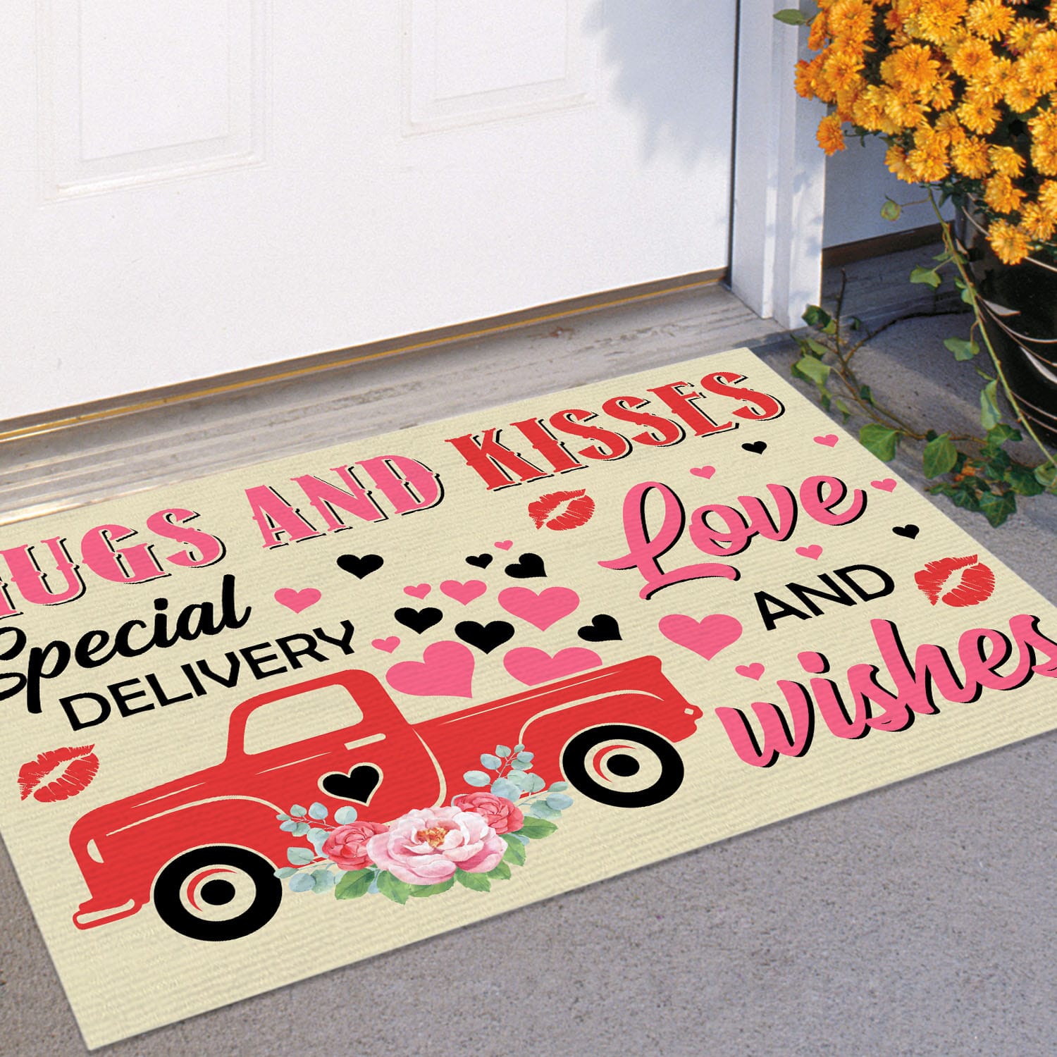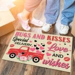 Let’s Shop Hugs And Kisses Special Delivery Love And Wishes Valentine’s Day Red Truck Outdoor Indoor Doormat Entrance!
