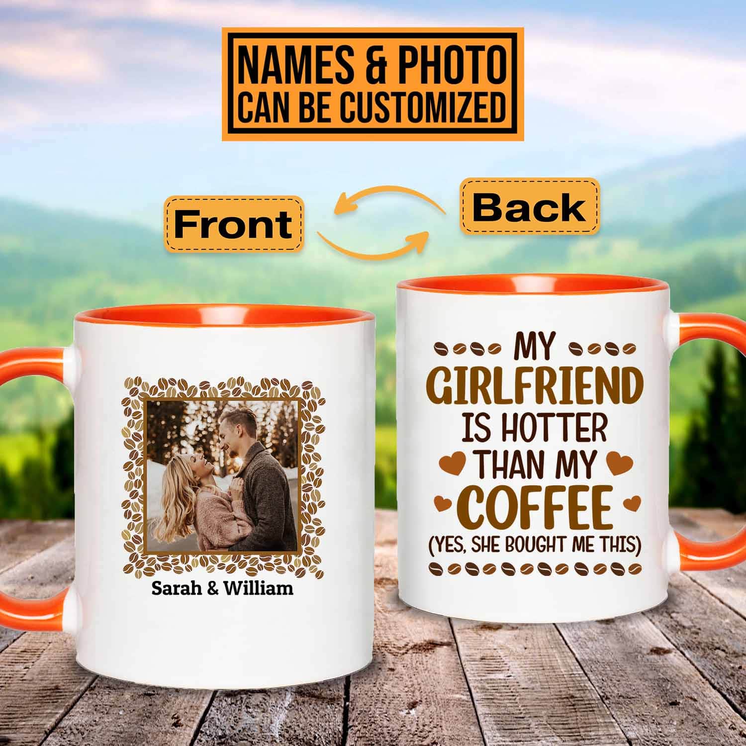 Let’s Shop Custom Photo Gift Valentine’s Day My Girlfriend Is Hotter than My Coffee Yes She Bought Me This Two Sided Accent Mug!