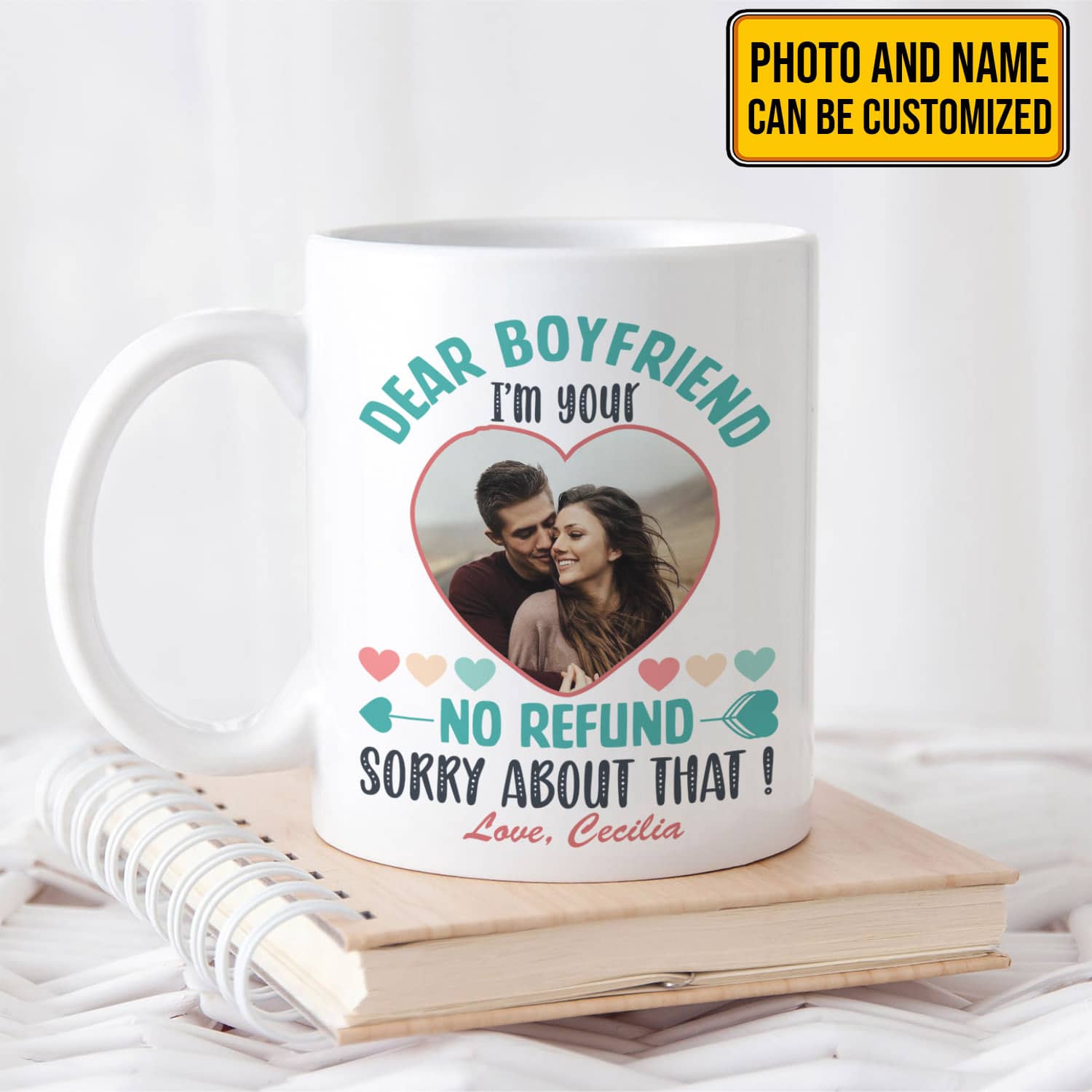 Let’s Shop Custom Photo Valentine Gifts for Him Dear Boyfriend I’m Yours No Refund Sorry About that Ceramic Coffee Mug – Beer Stein – Water Bottle!