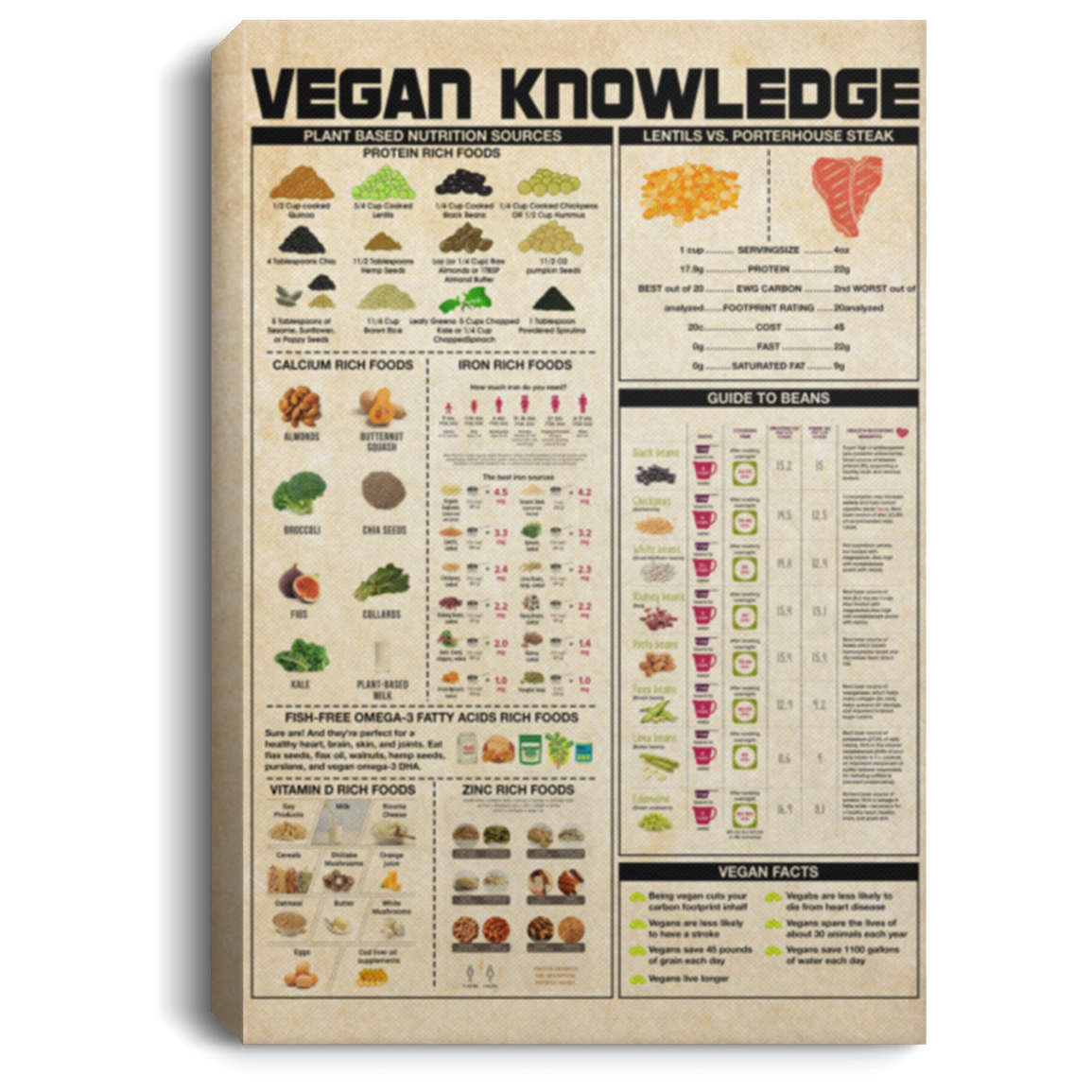 Vegan Knowledge Gallery Wrapped Framed Canvas Prints – Unframed Poster – Vegan Food Art