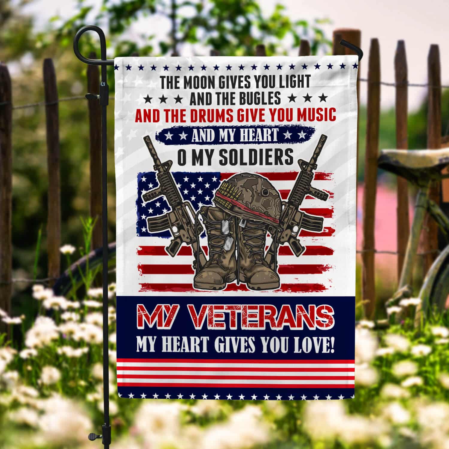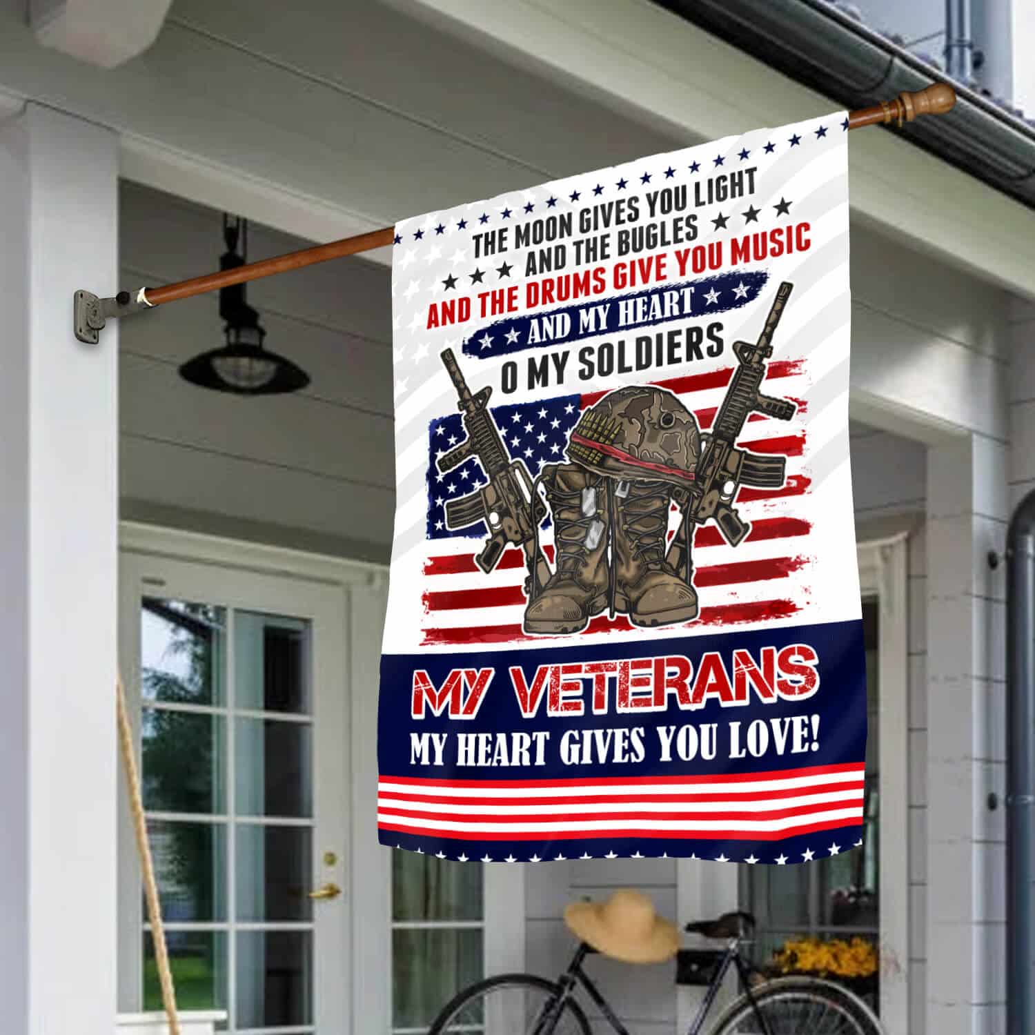 Let’s Shop My Veterans My Heart Gives You Love Garden Flag – American Veteran Hous Flag – Wall Flag!