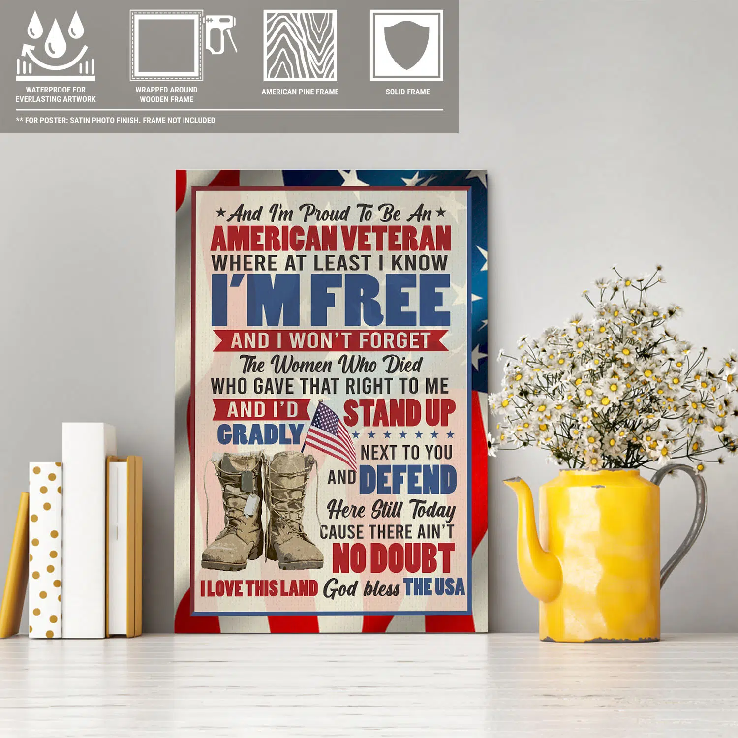 Are you spending too much time to find creative merchandise for you or suitable & special gifts for your mommy, your daddy, your son, your daughter, your children, your friends or someone you love? The struggle is over because we have various American Veteran Gifts, Veteran Wall Art Canvas, Veterans Canvas, Army Veteran Canvas, Thank You Veterans Canvas, Veteran Canvas Wall Art, Veteran Us Army Flag Canvas, Thank You Veterans Poster, Veteran Poster, Thank You Veterans Poster Sign, Army Veteran Poster which will make perfect presents for your beloveds. In order to make your present stand out, we have created lots of unique and awesome customized photo gifts & personalized designs.