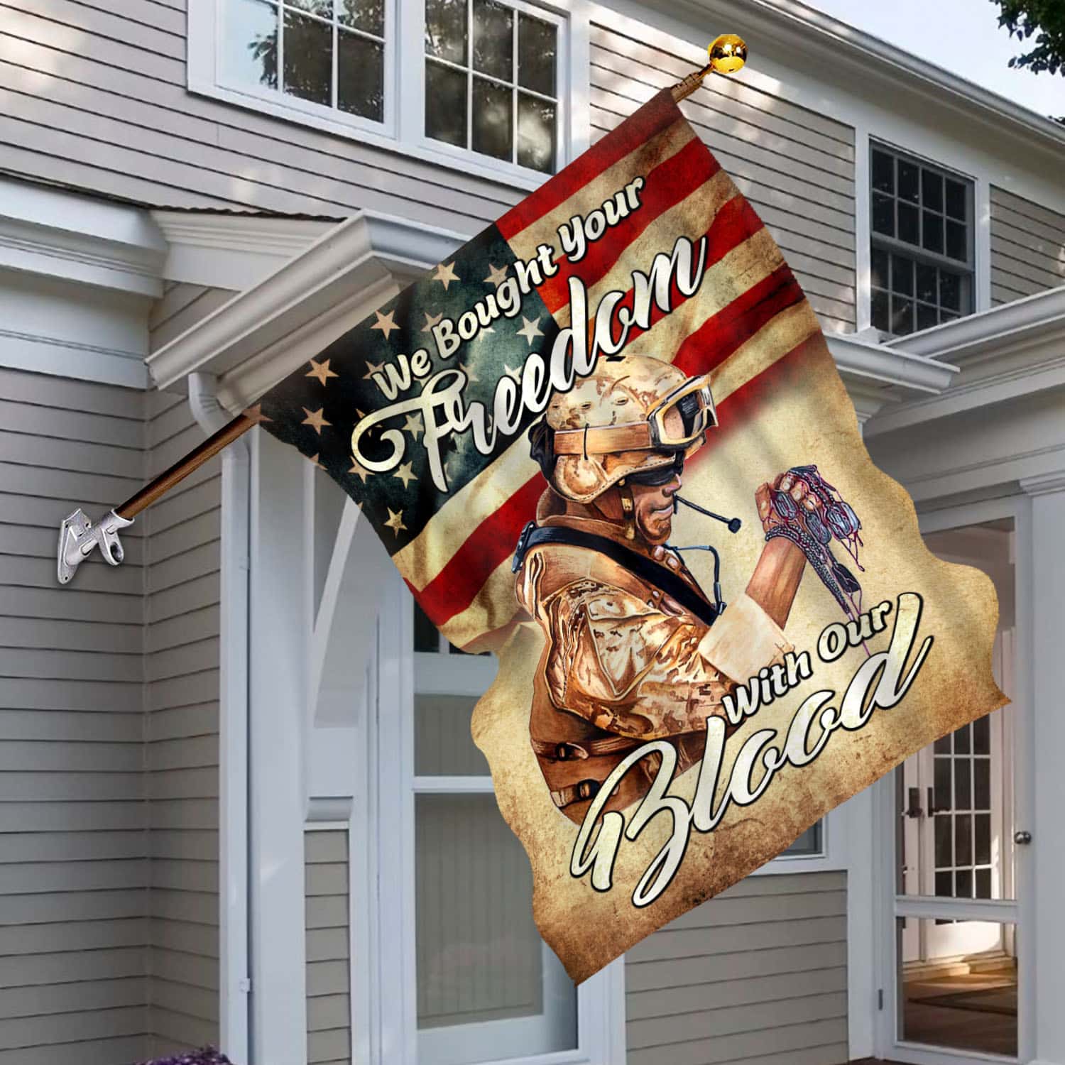 Let’s Shop We Bought Your Freedom With Our Blood Veteran Outdoor Indoor Decorative Garden Flag – House Flag – Wall Flag!