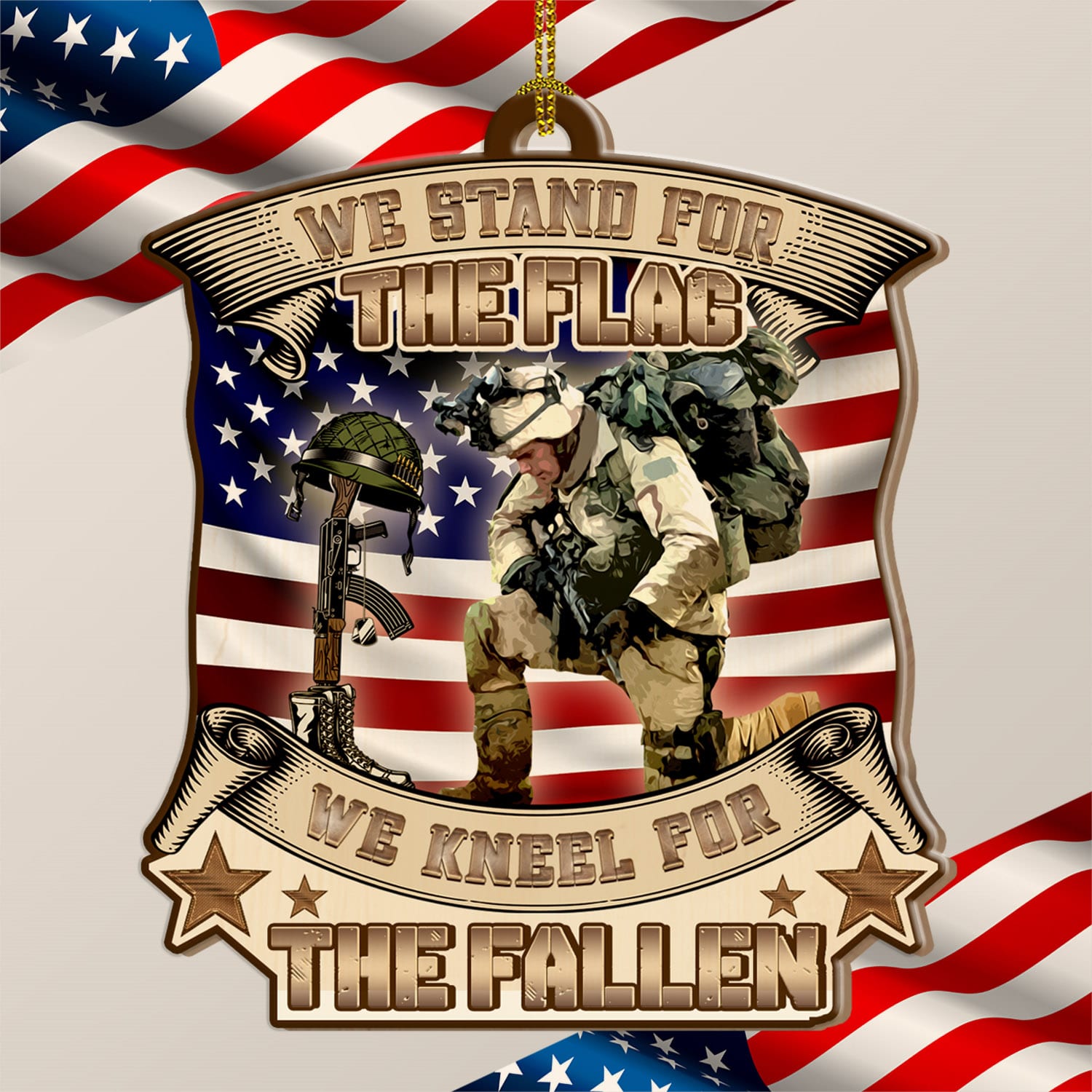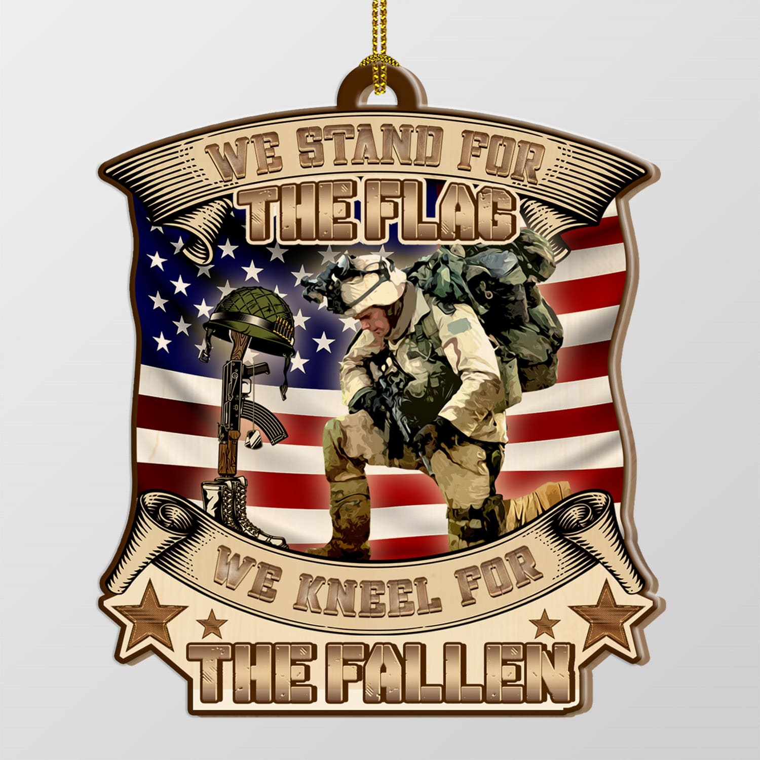 Let’s Shop We Stand for The Flag We Keel for The Fallen Memorial Veteran Decorative Custom Shaped Wooden Christmas Ornament Keepsake!