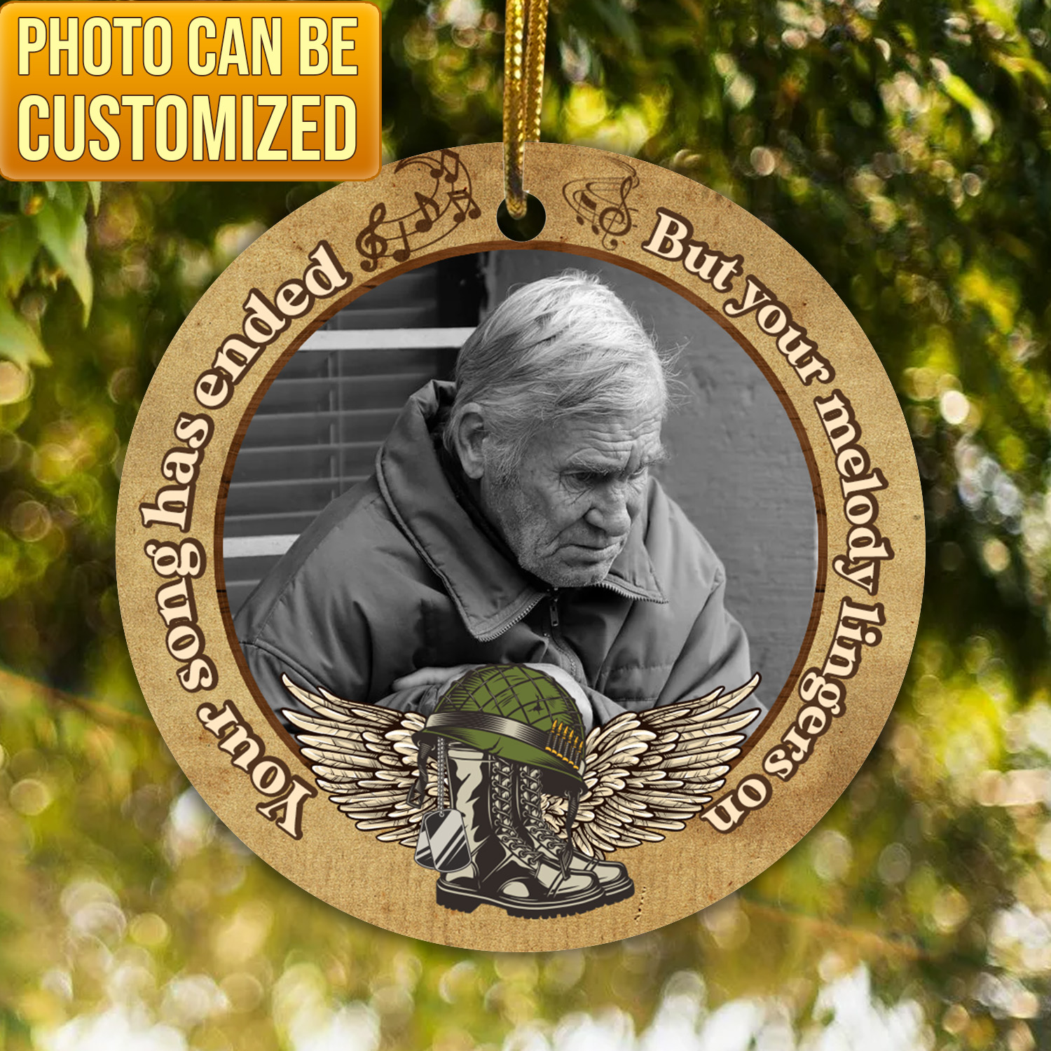 Let’s Shop Personalized Photo Your Song Has Ended But Your Melody Lingers On Veteran Memorial Circle Ornament!