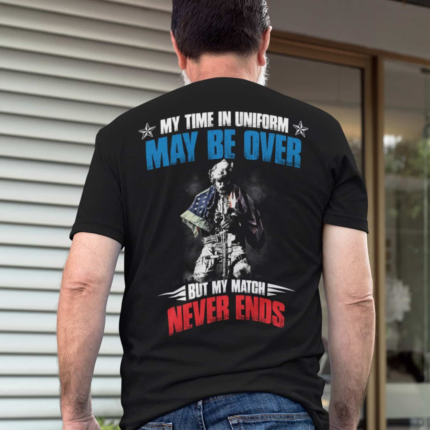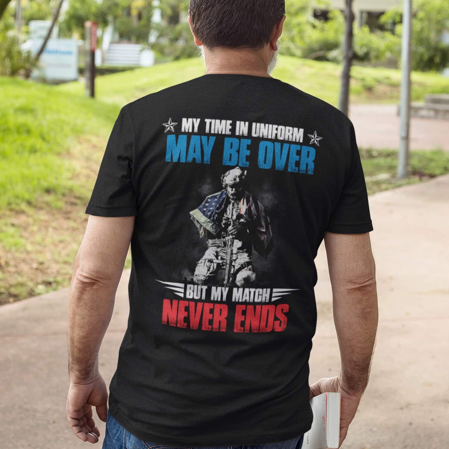 My Time Uniform But My Match Never Ends Print On Back Only – Plain Front T-Shirt