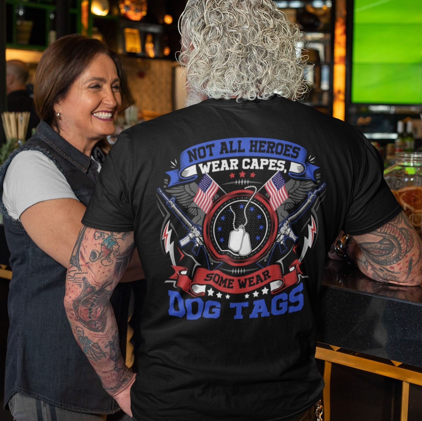 Not All Heroes Wear Capes Some Wear Dog Tags Print On Back T-Shirt – Veteran Hoodie – Sweatshirt – Long Sleeve Shirt