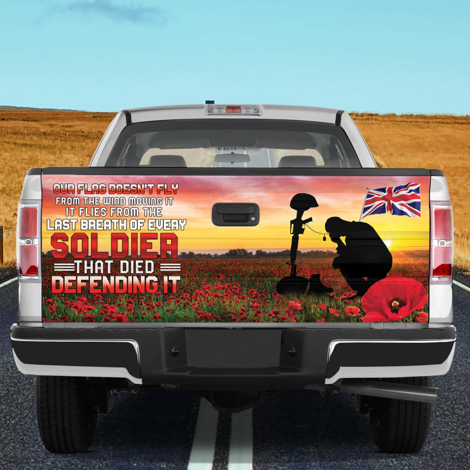 Let’s Shop Veterans Memorial Day Poppy Remembrance Day Truck Tailgate Decal Sticker Wrap – Lest We Forget Truck Tailgate Wrap!