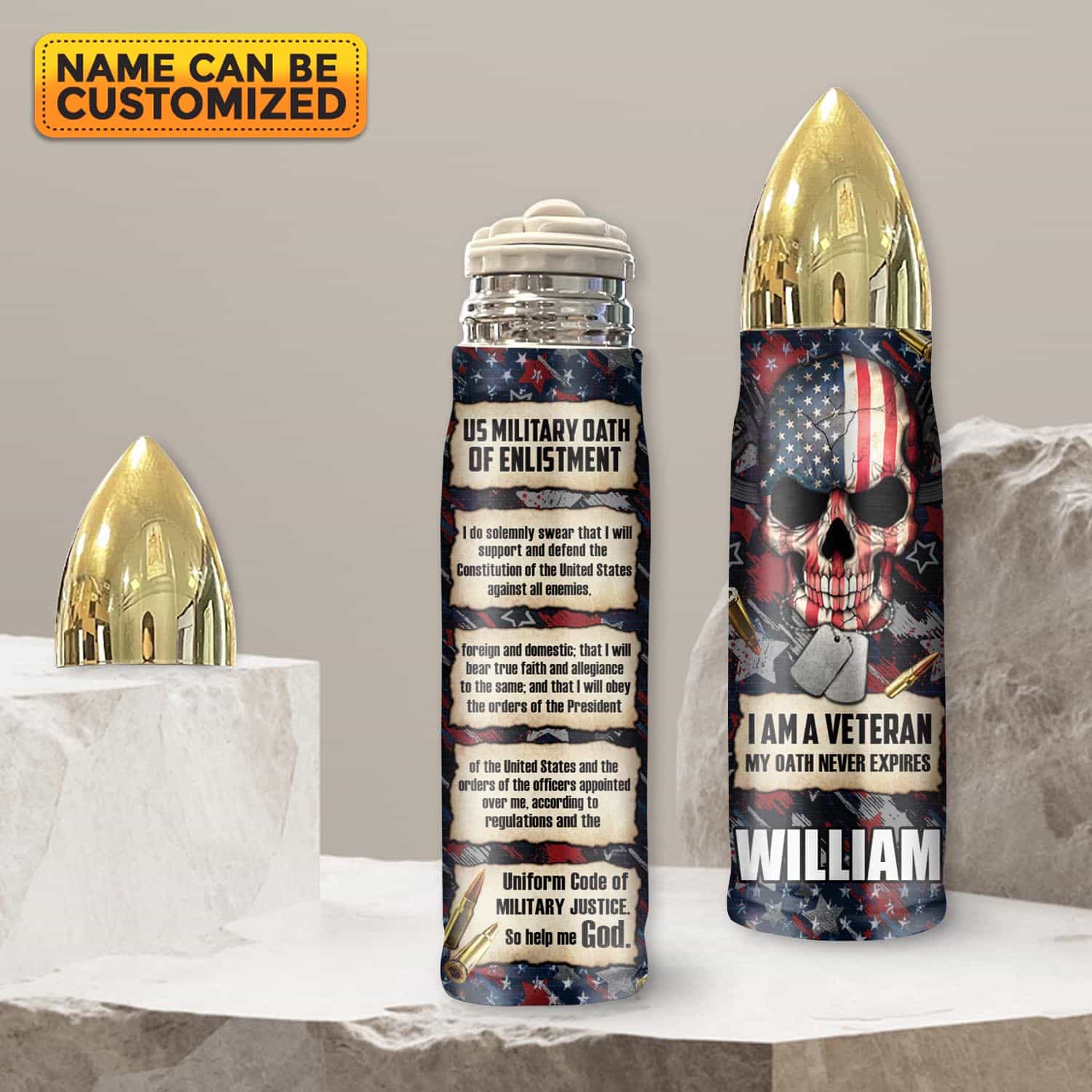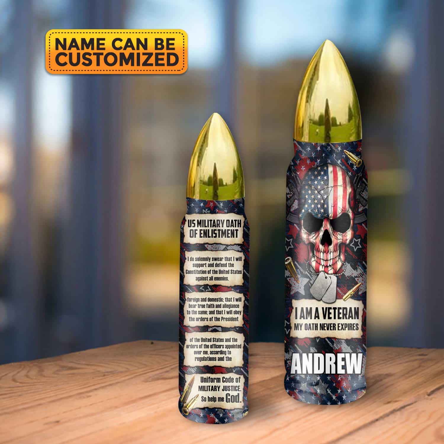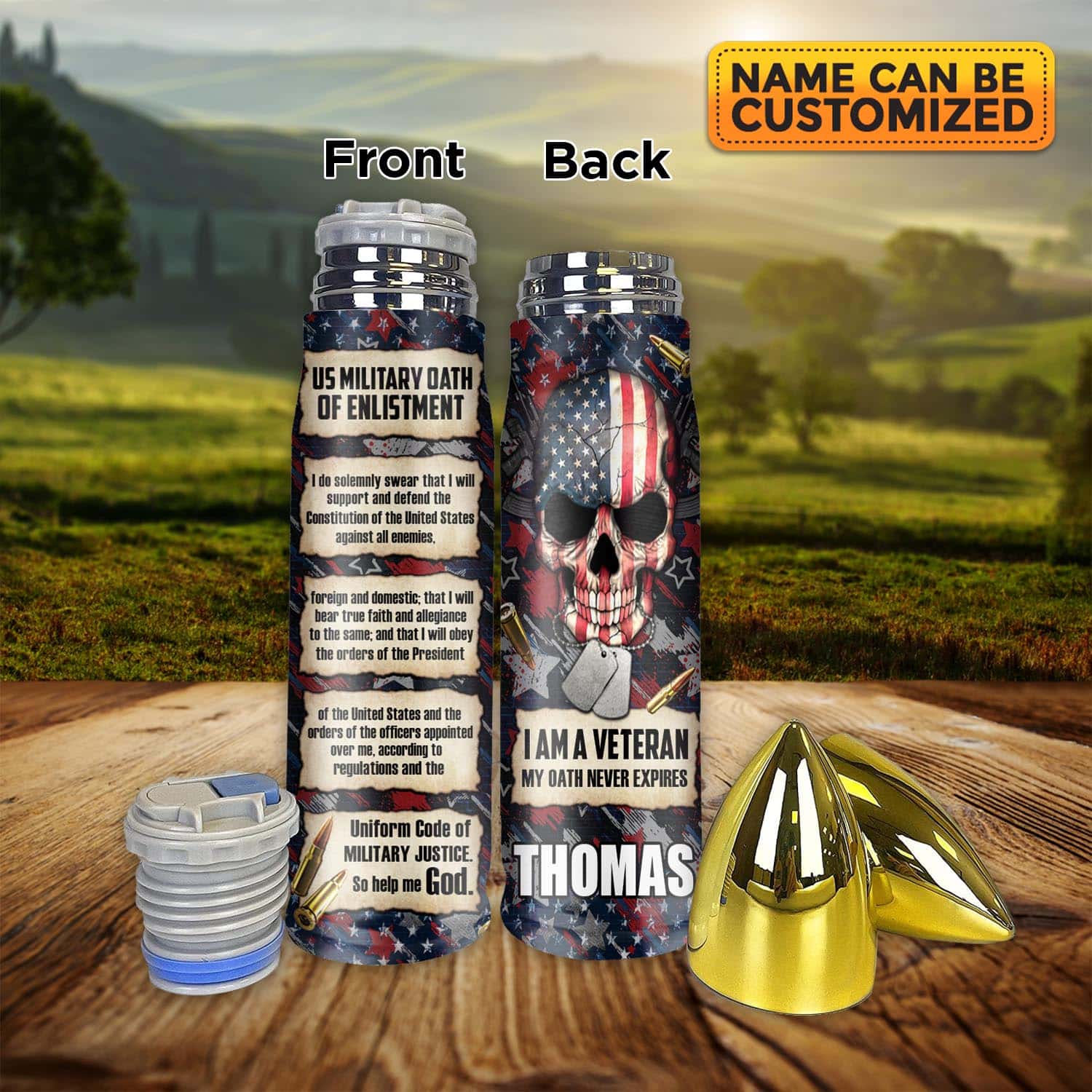 Let’s Shop Personalized I Am A Veteran My Oath Never Expires Travel Bullet Shape Insulated Tumbler With Lid!