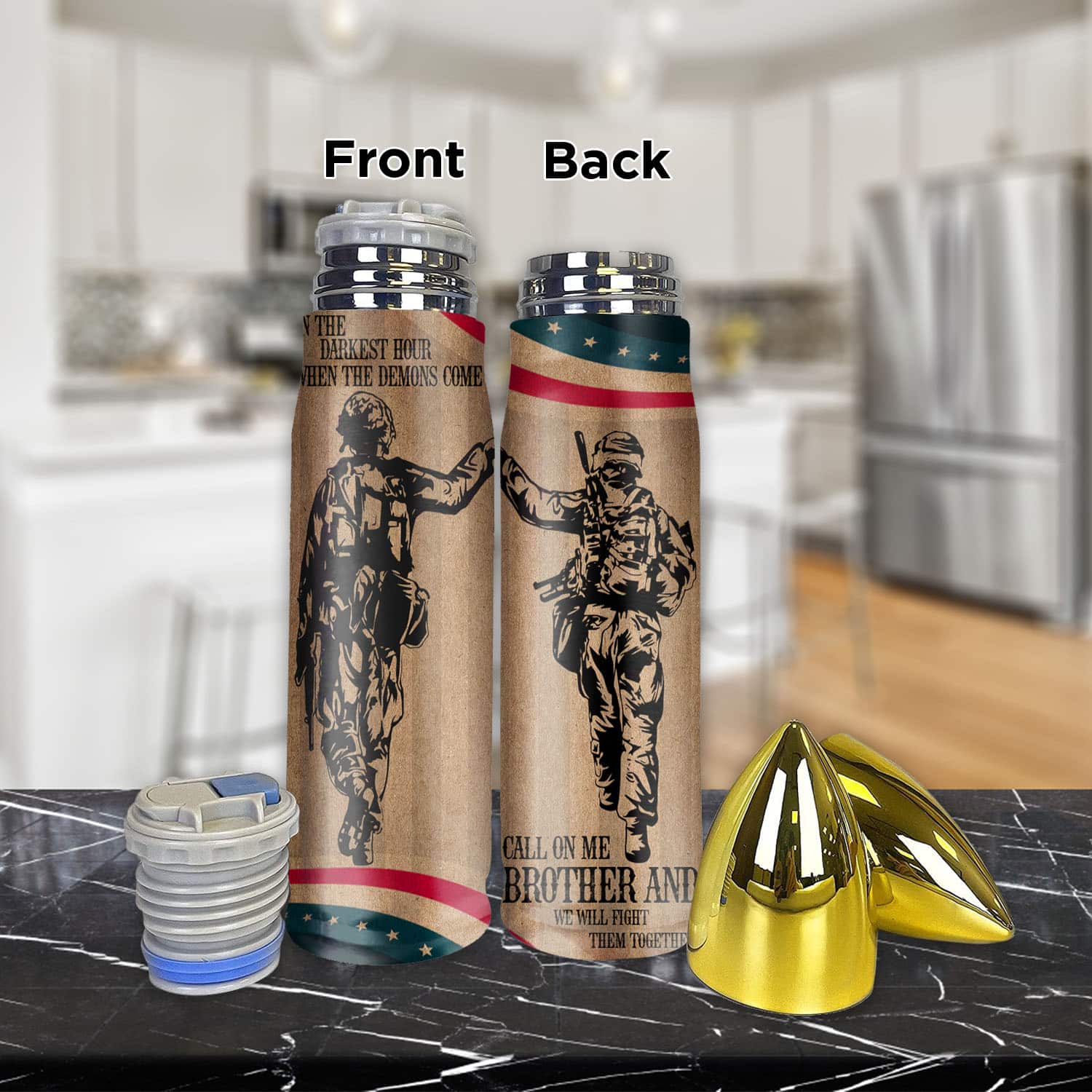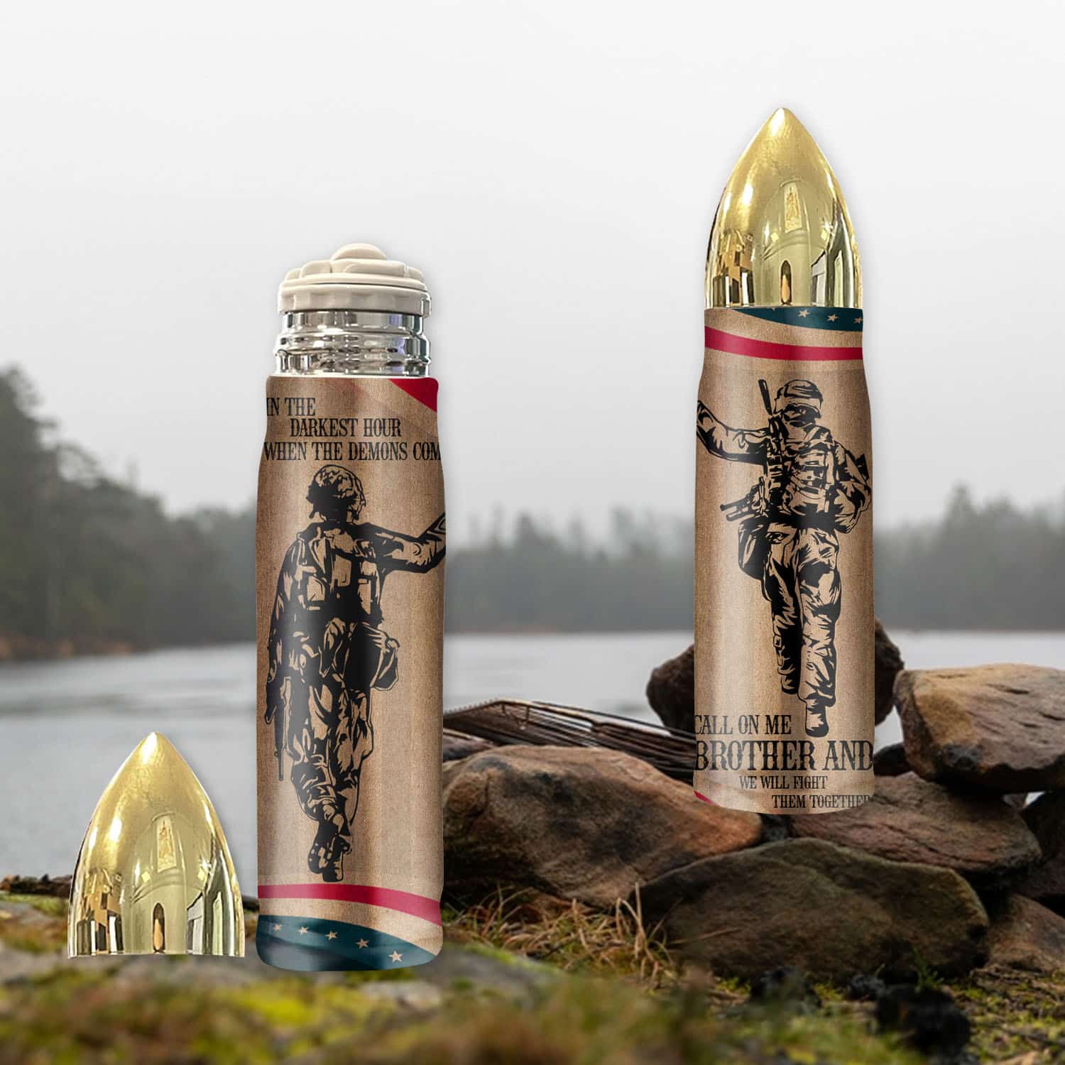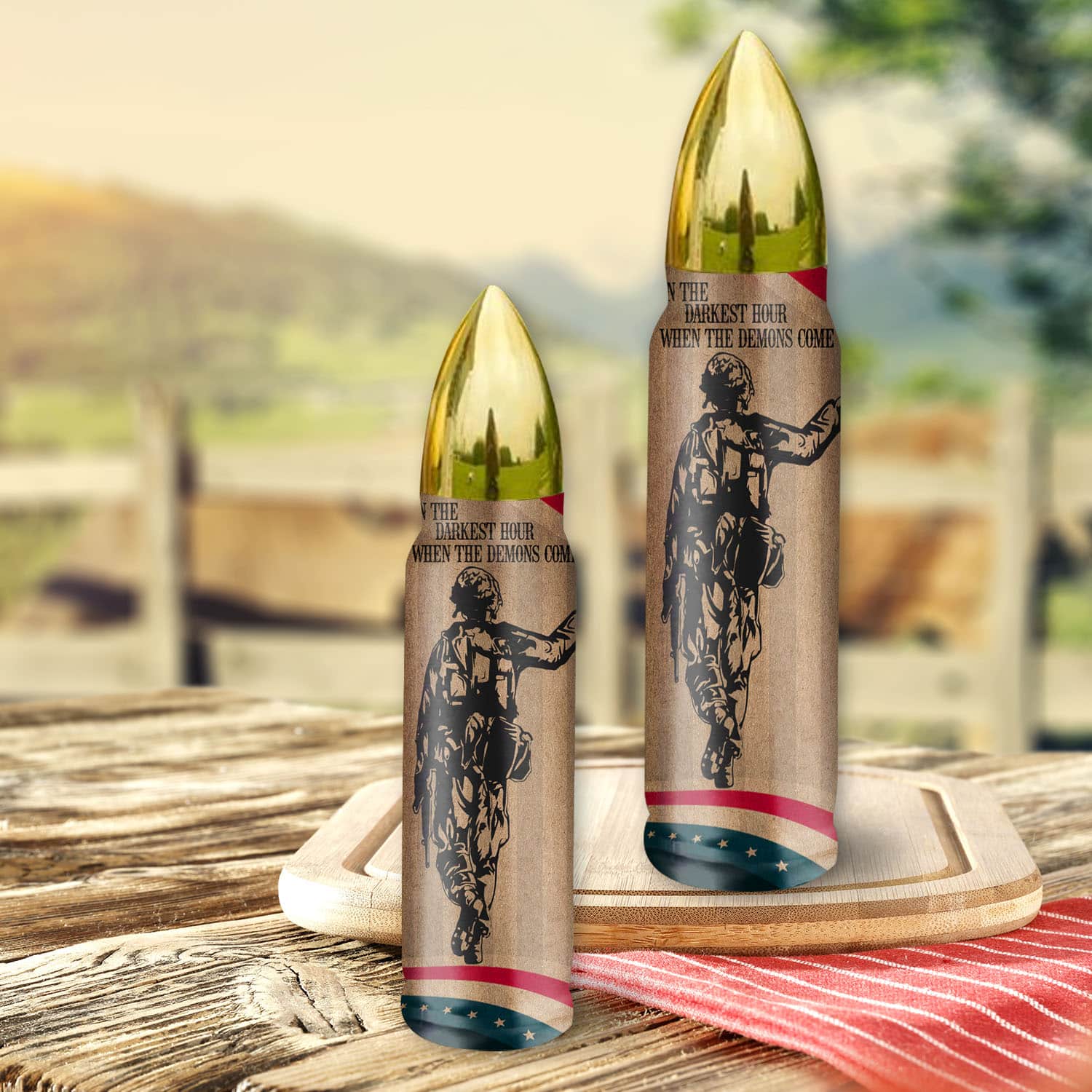 Let’s Shop Veteran In The Darkest Hour When The Demons Come Call On Me Brother Bullet Shape Insulated Tumbler With Lid!