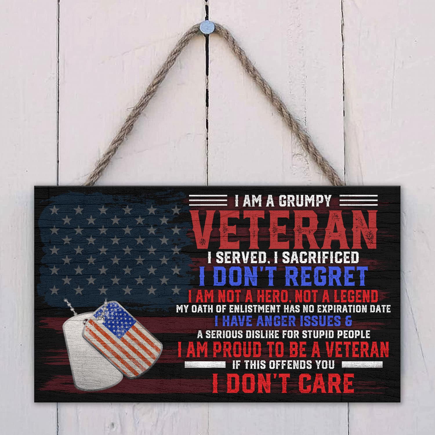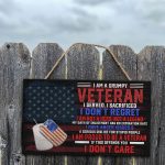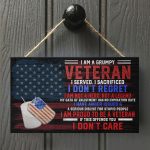 Let’s Shop I Am A Grumpy Veteran I Served I Sacrificed I Don’t Regret Wooden Door Sign – Veteran Front Porch Sign Decor!