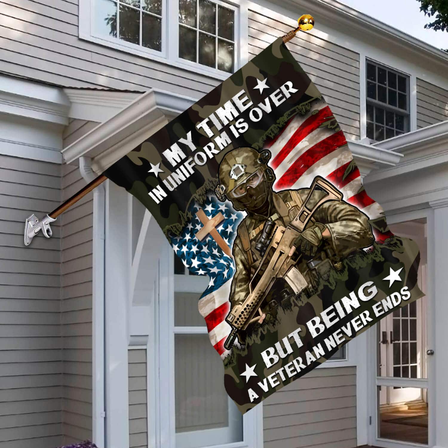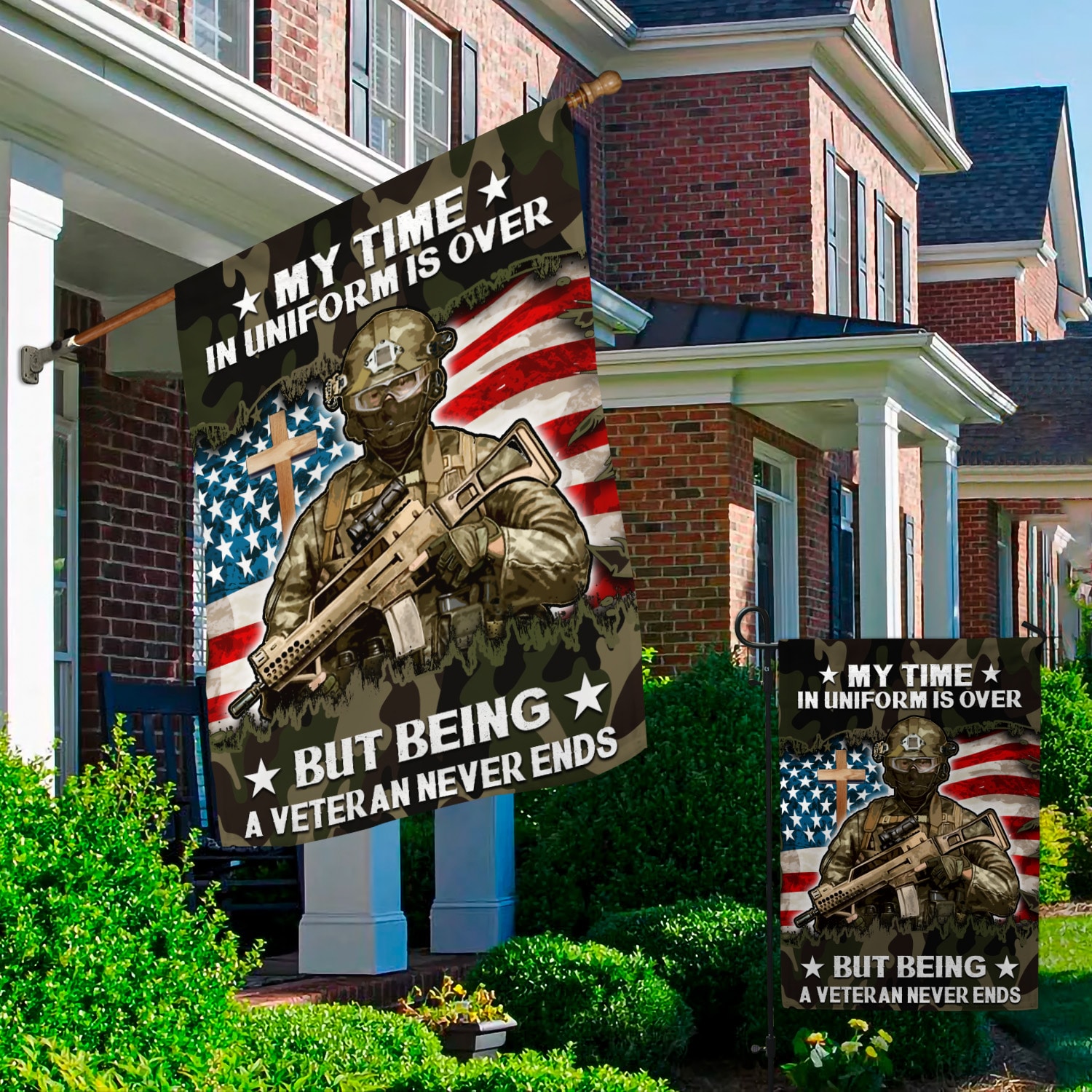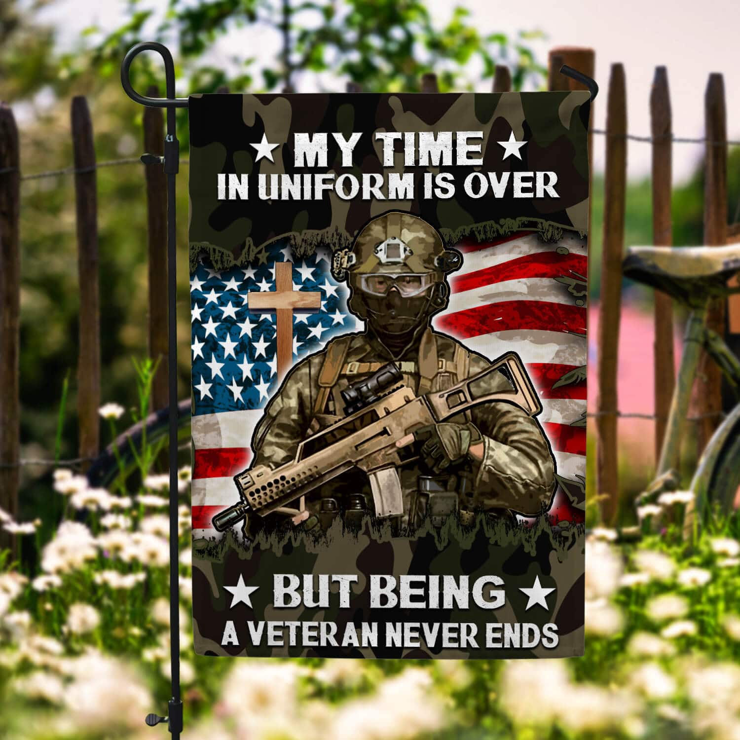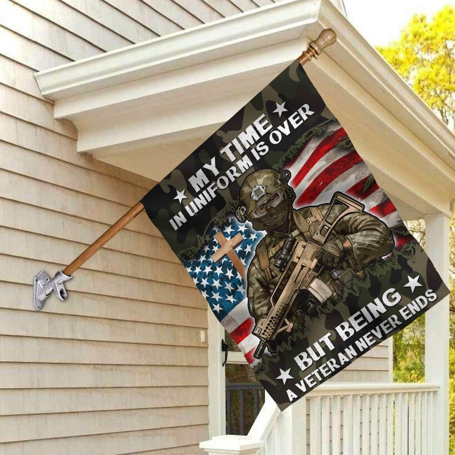 Let’s Shop My Time In Uniform Is Over But Being A Veteran Never Ends Flag – Veterans Memorial Day Garden Flag – House Flag!