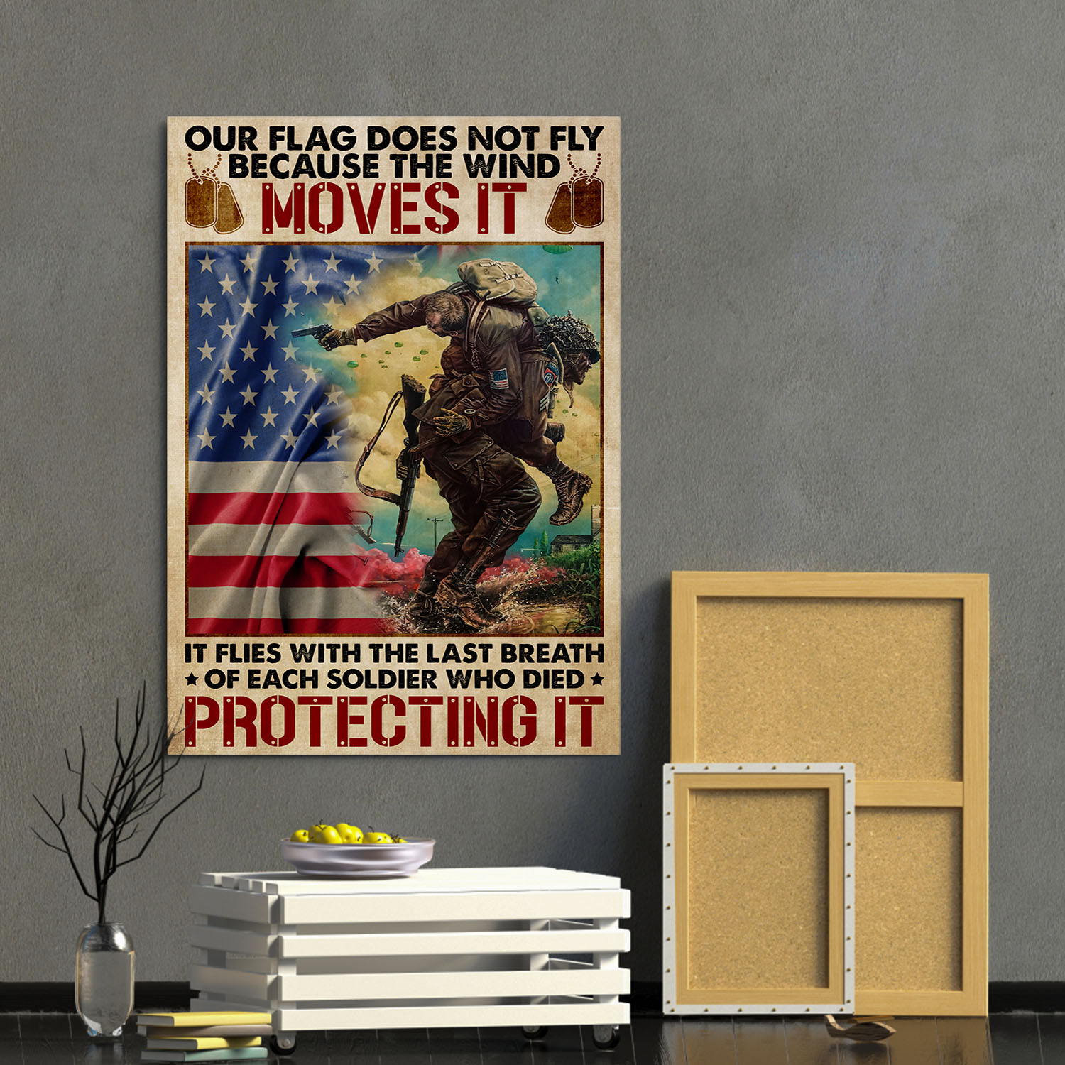 Let’s Shop Our Flag Does Not Fly Because the Wind Moves It – Veteran Day Gifts Military Framed Canvas Prints – Unframed Poster!