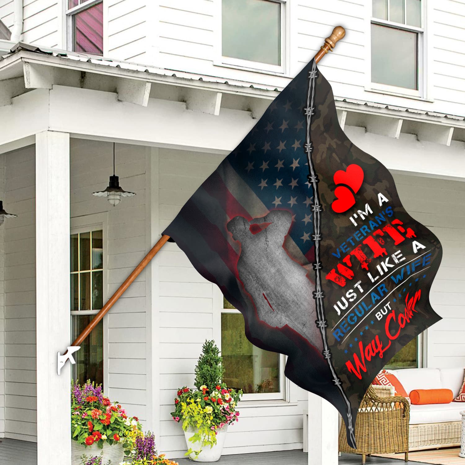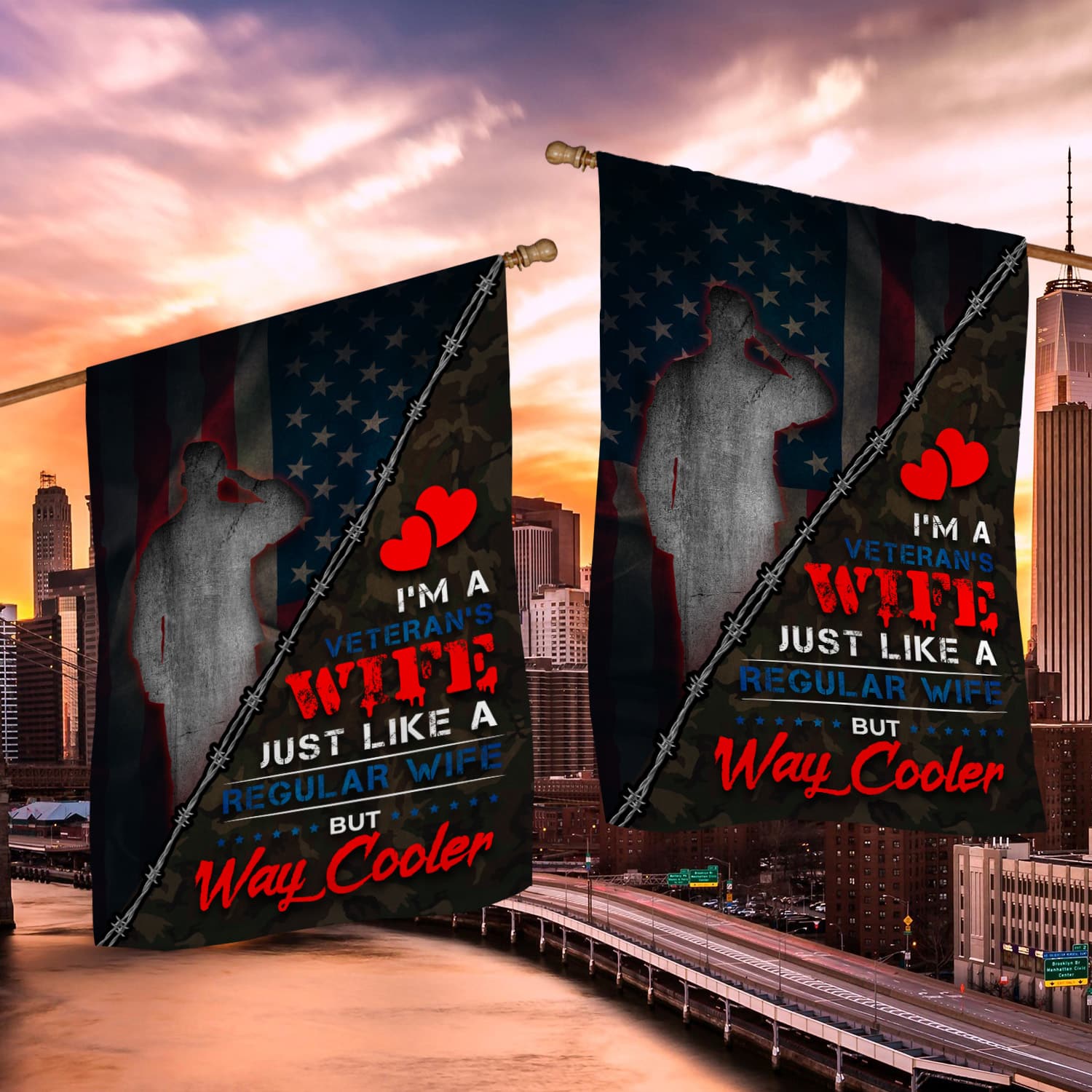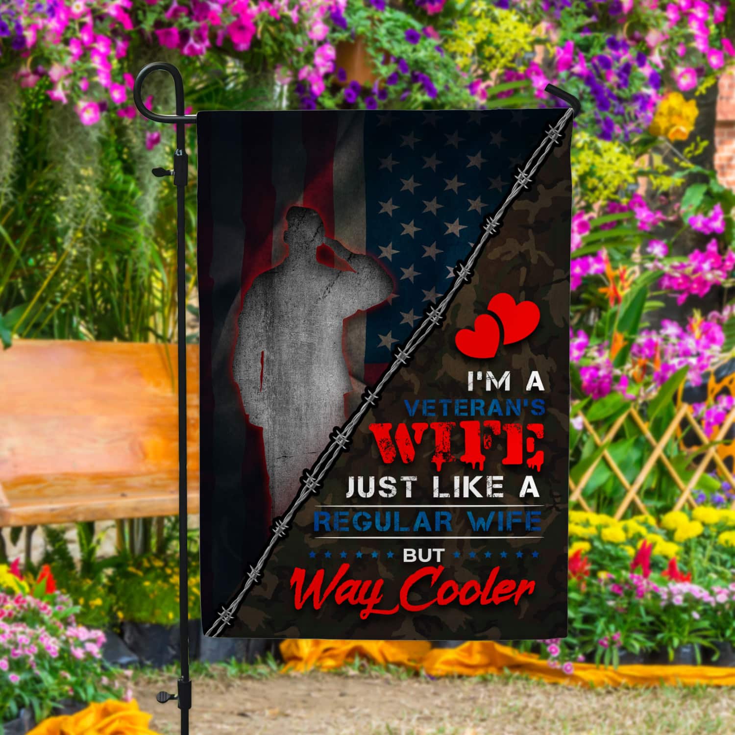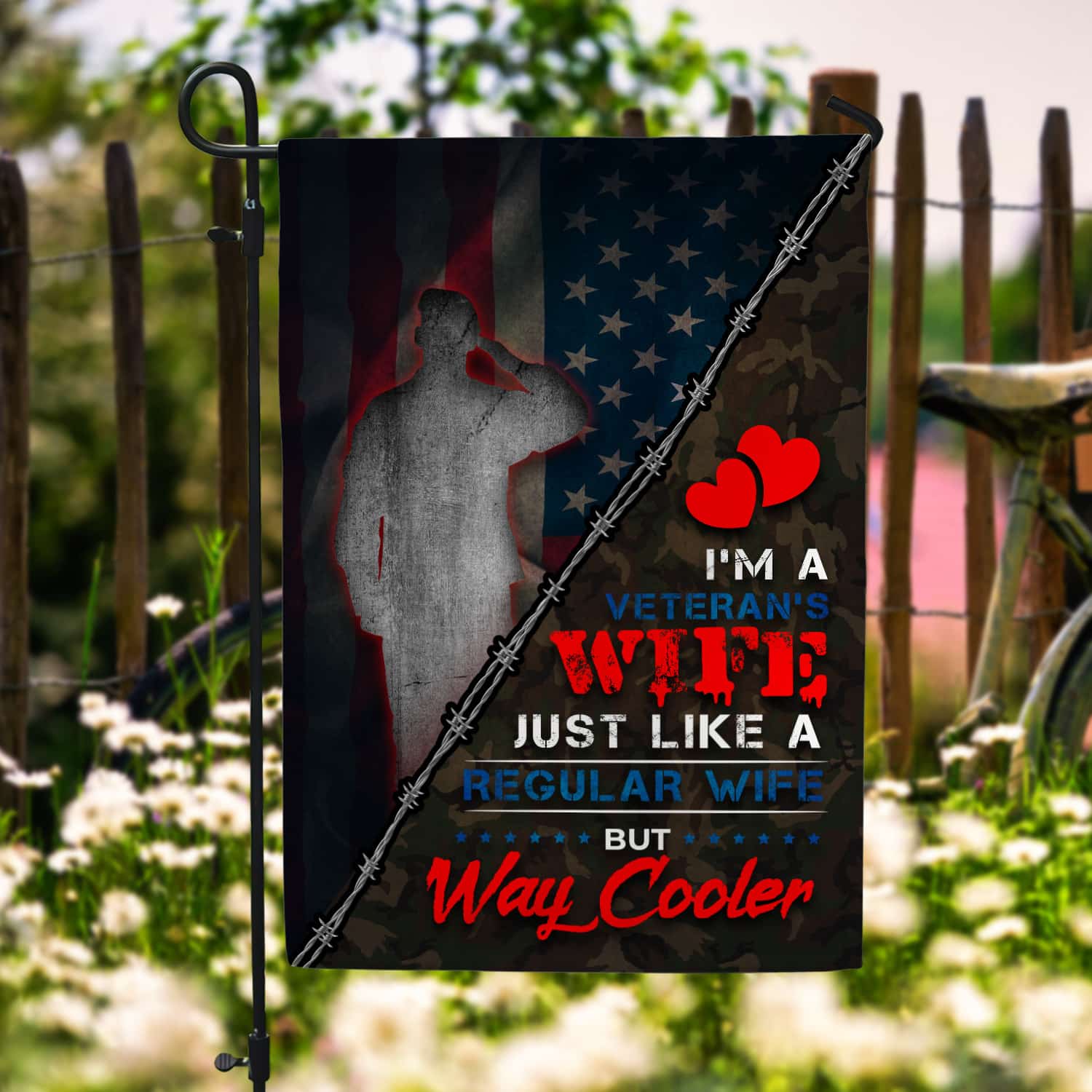 Let’s Shop I’m a Veteran’s Wife Just Like a Regular Wife but Way Cooler Garden Flag – Veterans Day Flag!