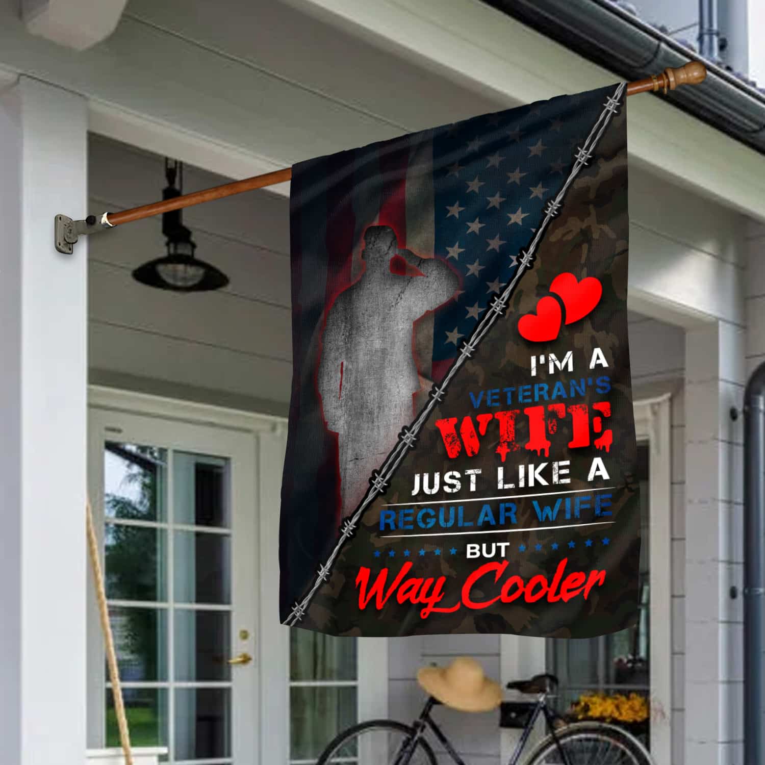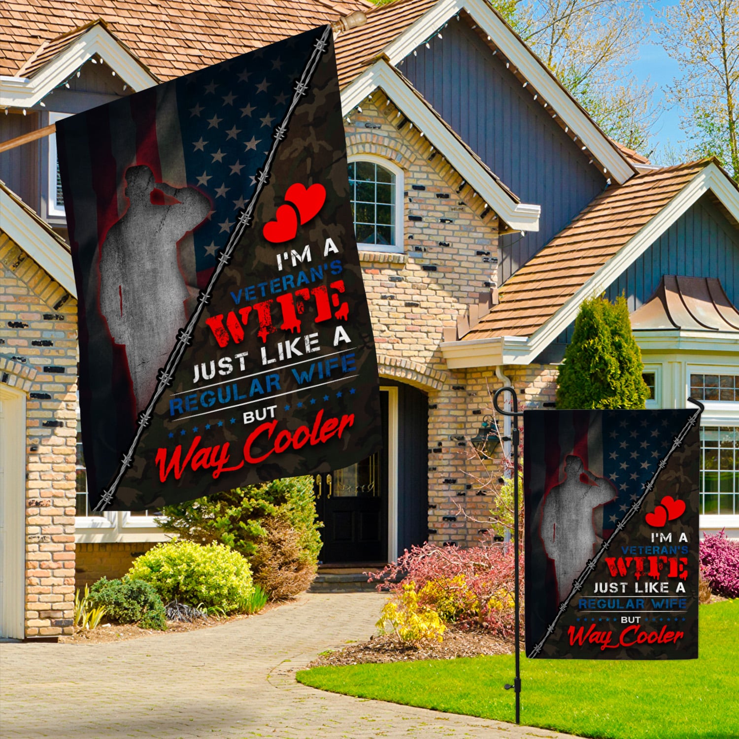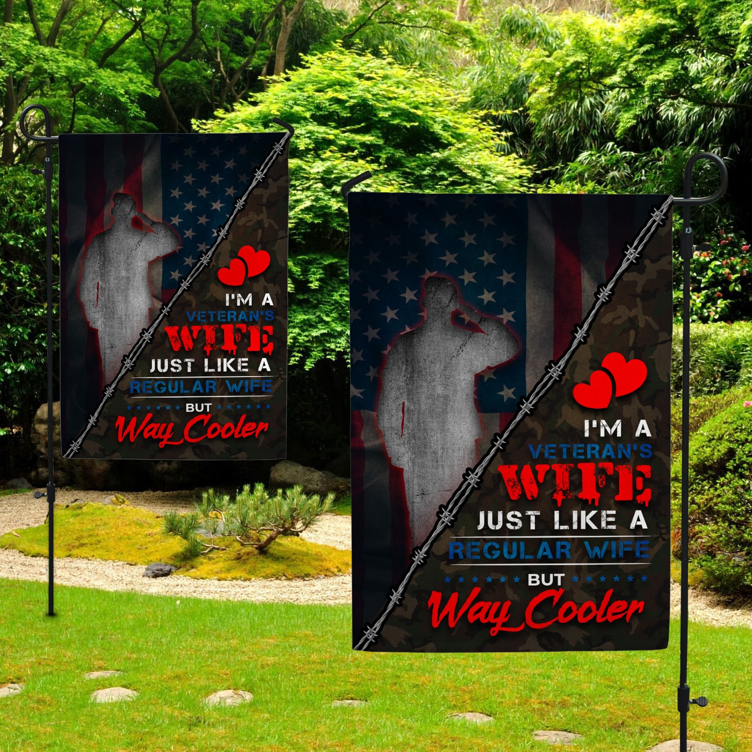 Let’s Shop I’m a Veteran’s Wife Just Like a Regular Wife but Way Cooler Garden Flag – Veterans Day Flag!