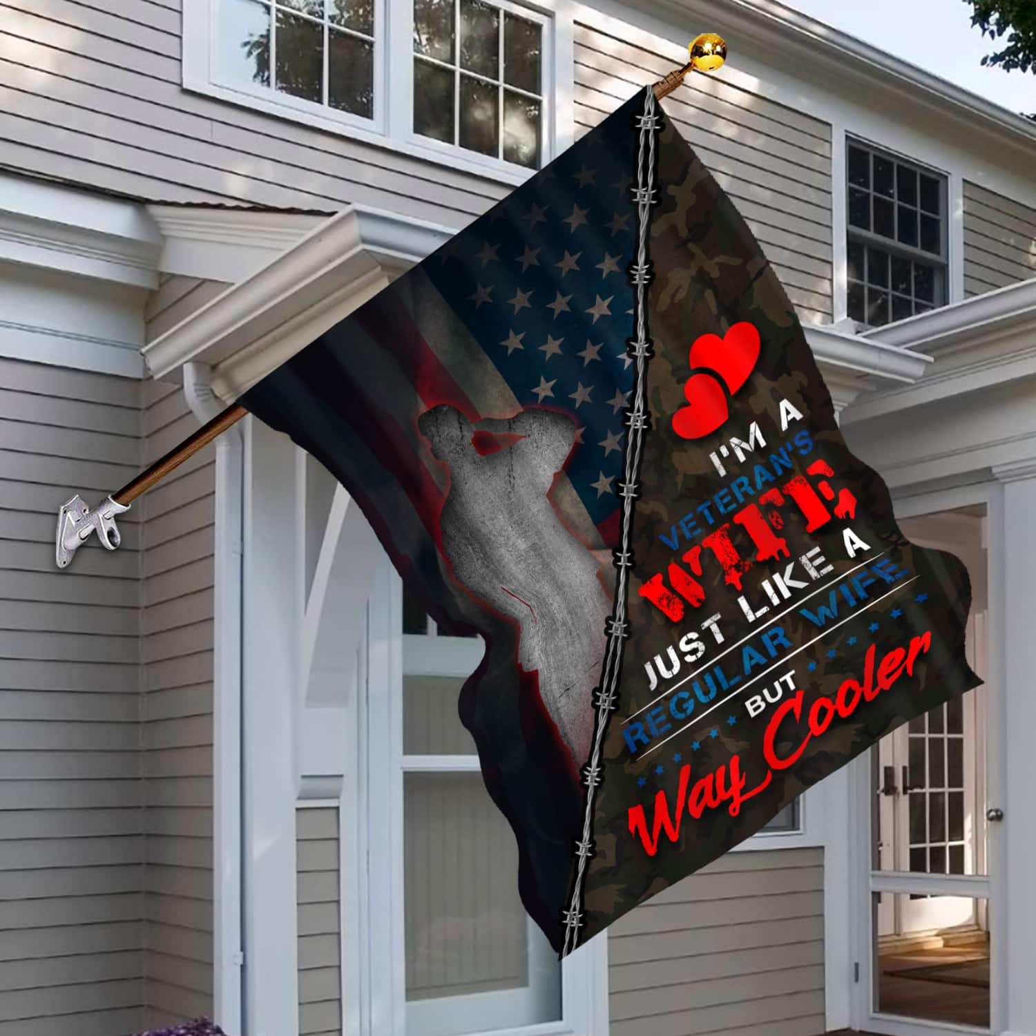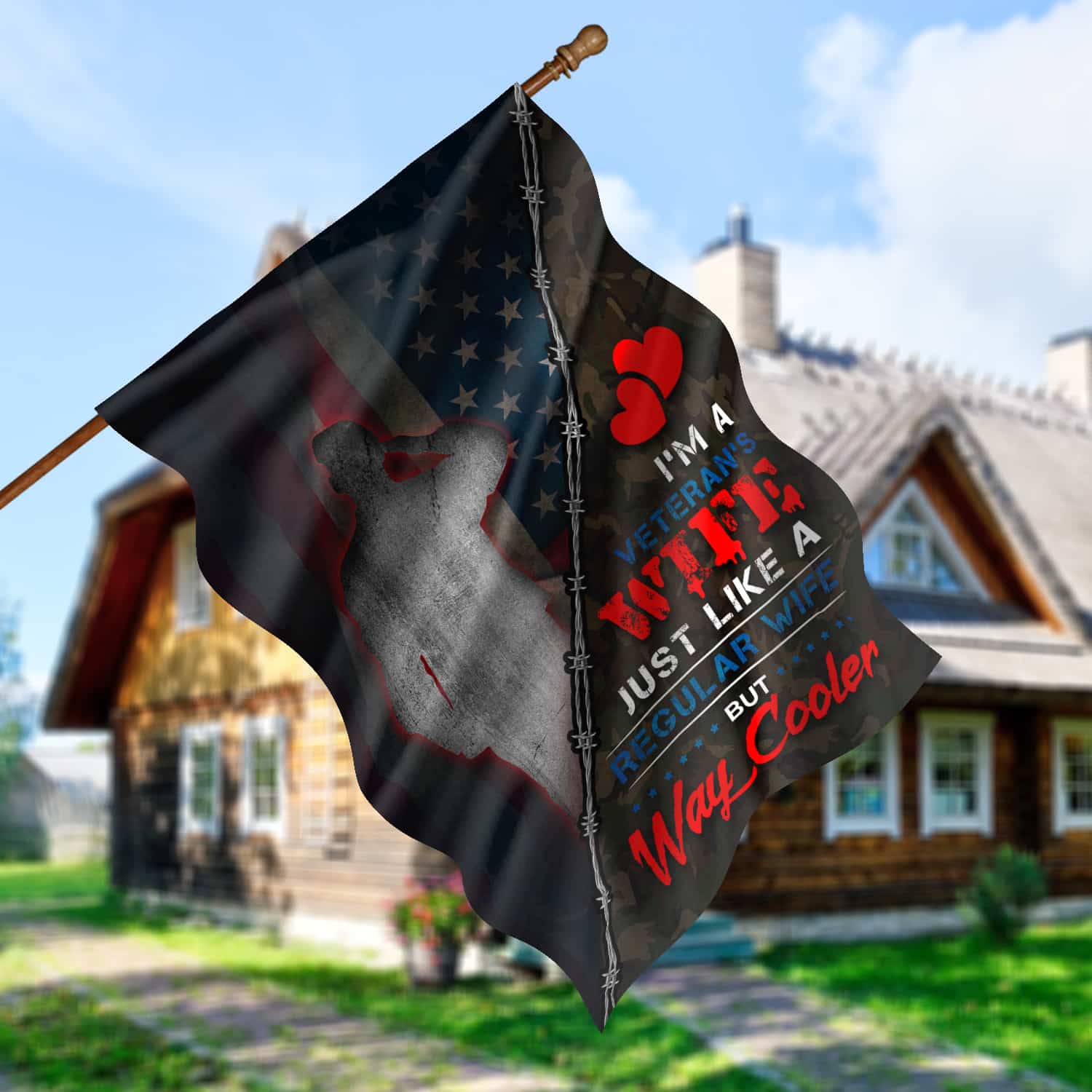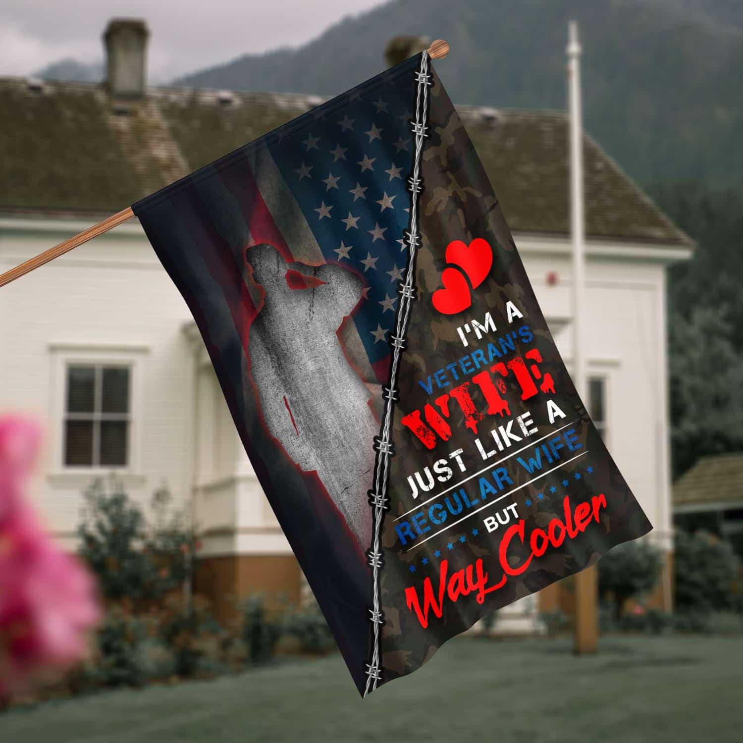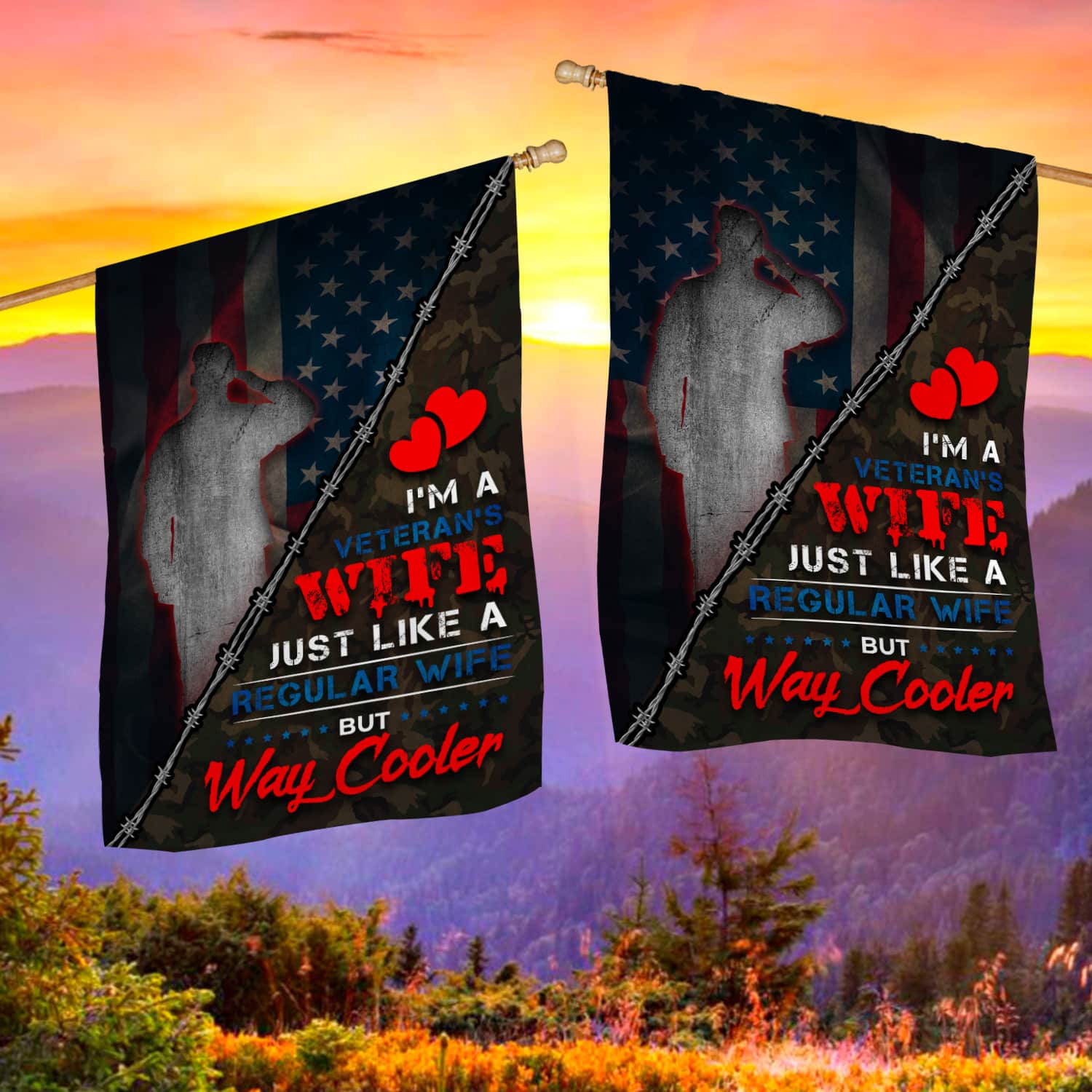 Let’s Shop I’m a Veteran’s Wife Just Like a Regular Wife but Way Cooler Garden Flag – Veterans Day Flag!