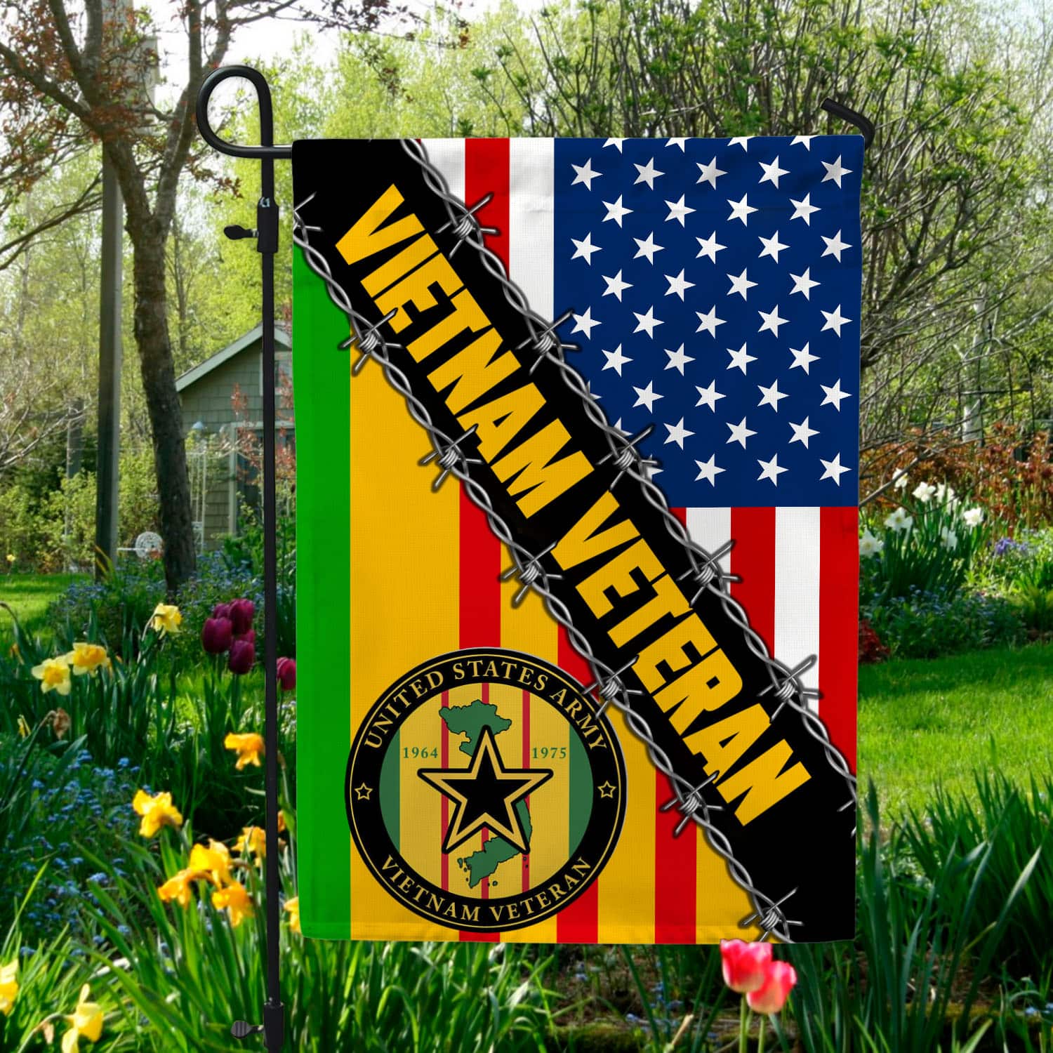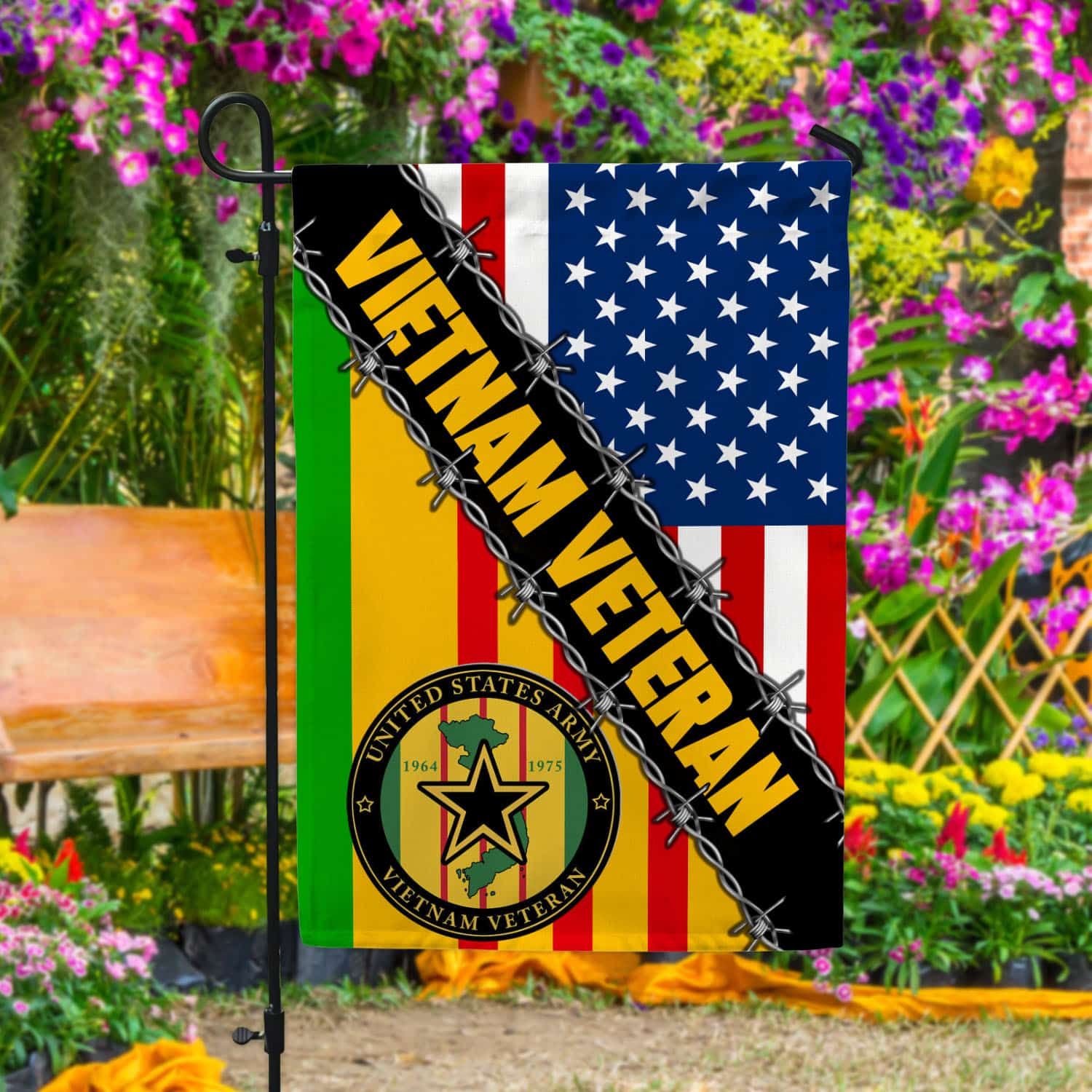 Let’s Shop Vietnam Veteran American Flag 1964 1975 Garden Flag – Proud Vietnam Veteran House Flag – Vietnam Veteran Gifts!