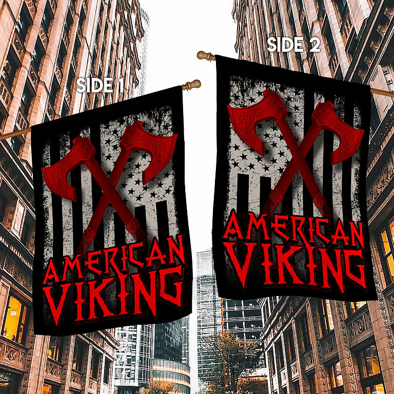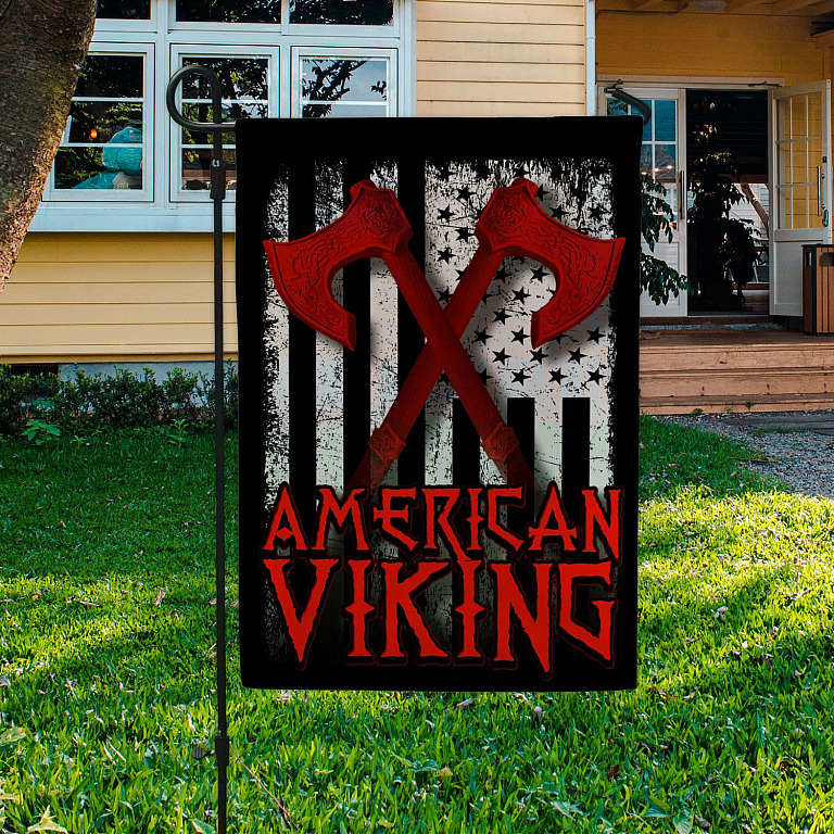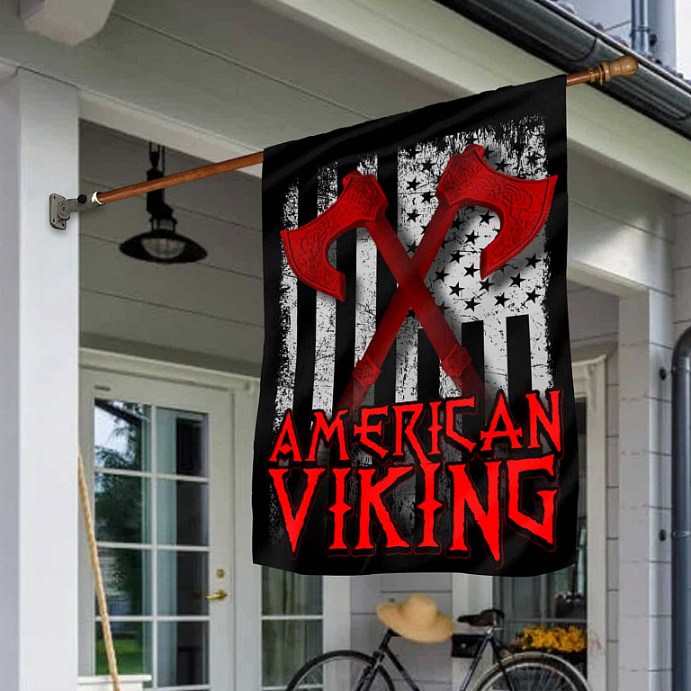 Let’s Shop American Viking With Axe Garden Flag – Viking American Flag House Flag!