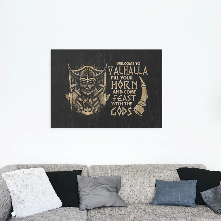 Let’s Shop Vikings Welcome To Valhalla Fill Your Horn And Come Feast With The Gods Framed Canvas Print – Unframed Poster!