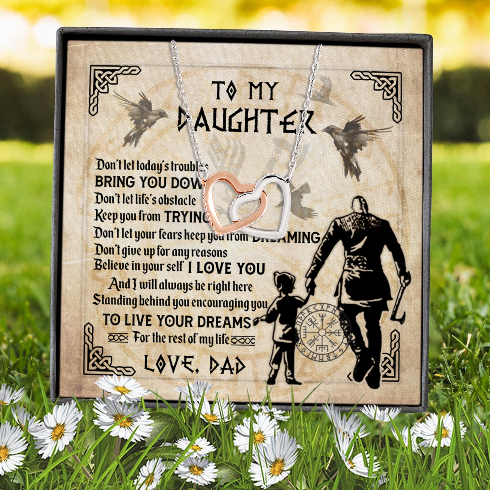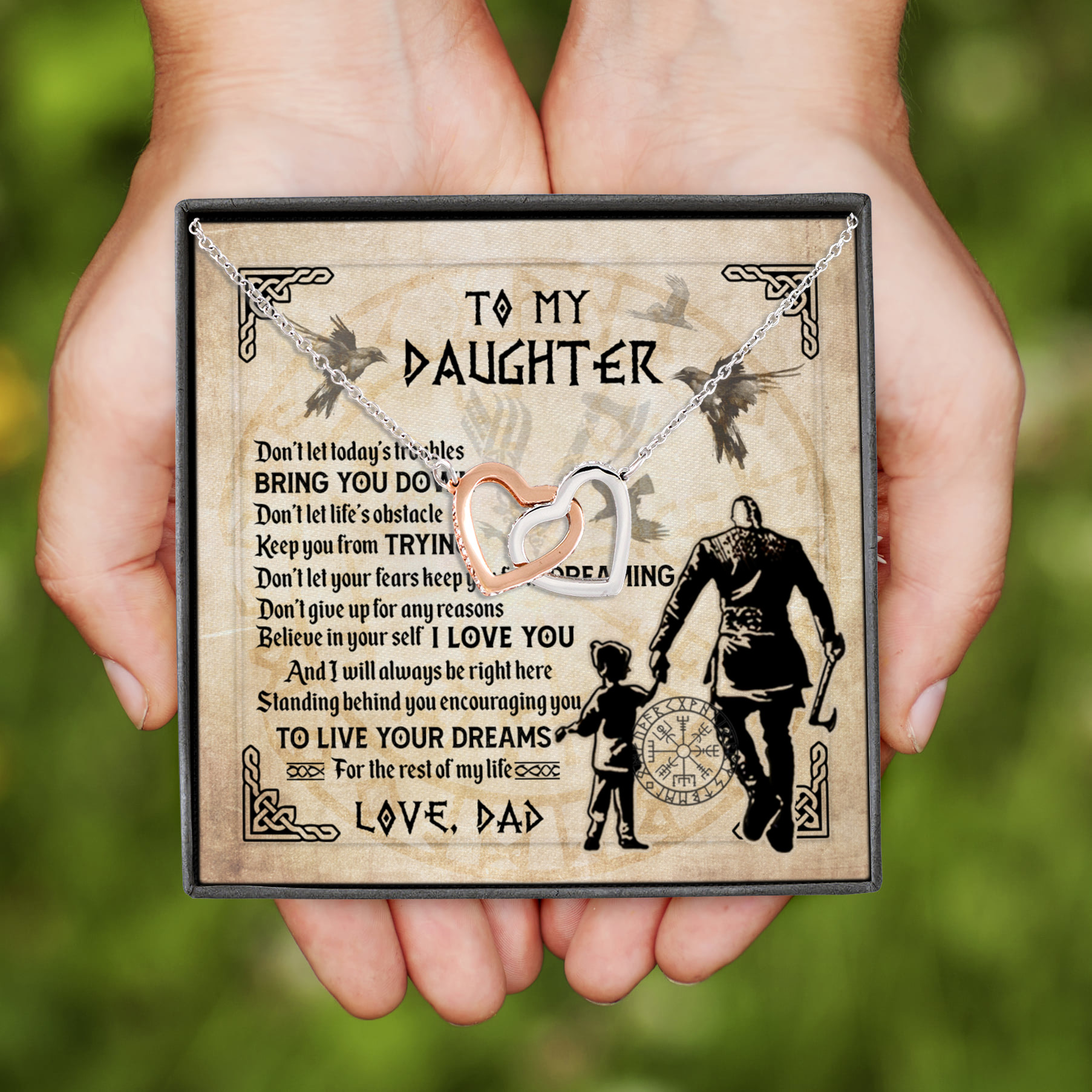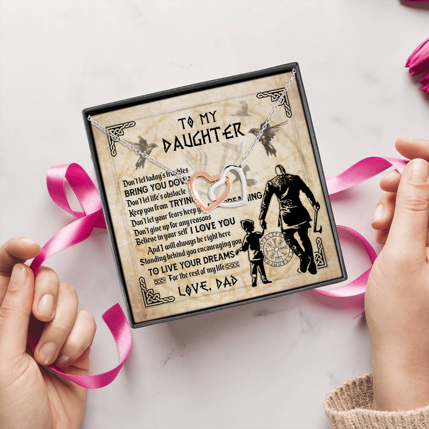 Let’s Shop Viking Dad to My Daughter Don’t Let Today’s Troubles Bring You Down Interlocking Hearts Pendant Necklace!