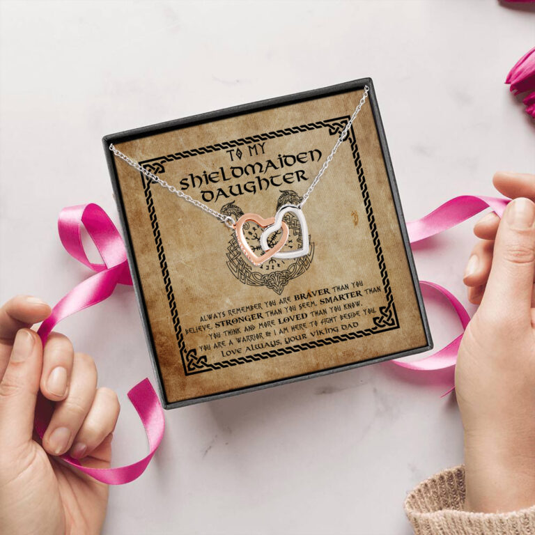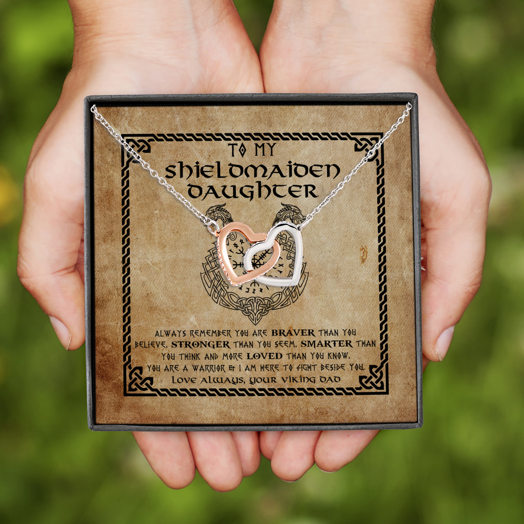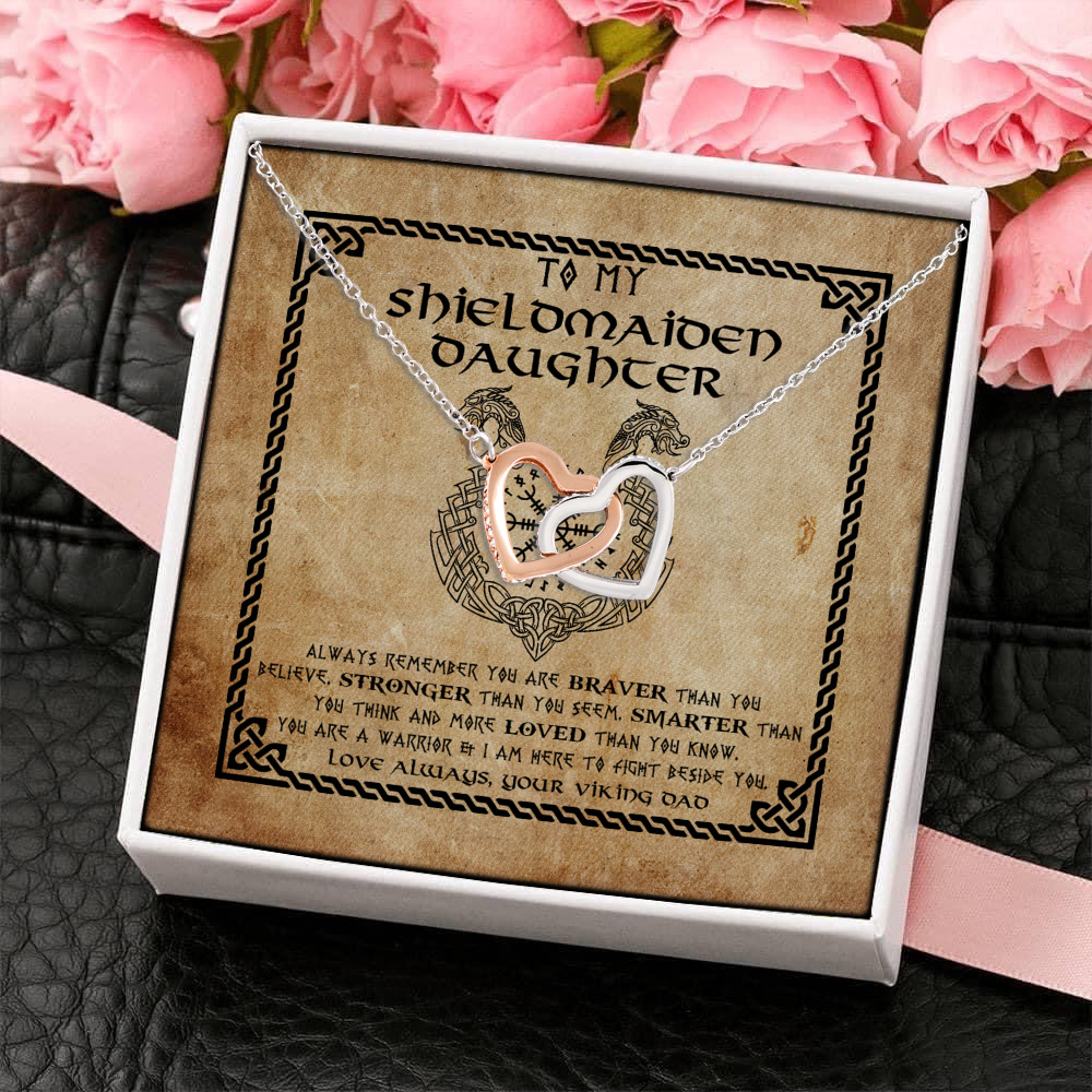 Let’s Shop From Dad To My Shieldmaiden Daughter Always Remember You Are Braver Than You Believe Interlocking Hearts Necklace!