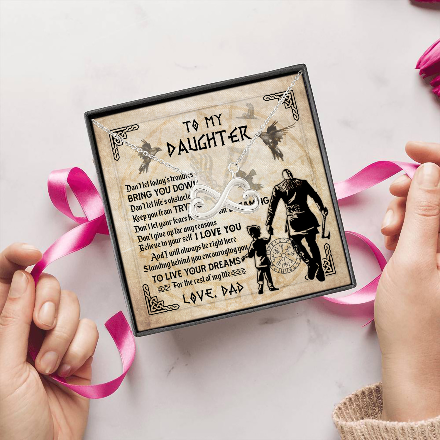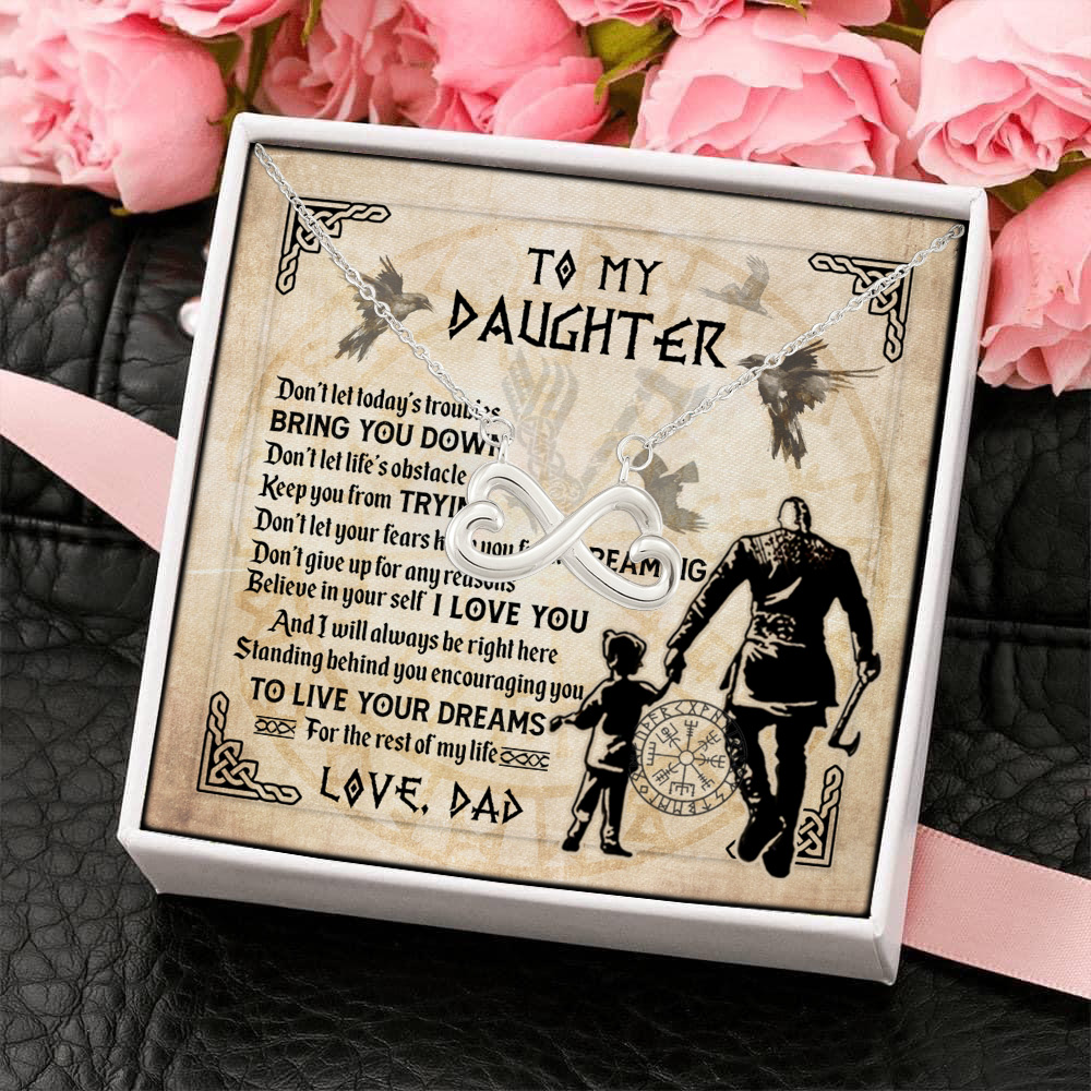 Let’s Shop Viking Dad to My Daughter Don’t Let Today’s Troubles Bring You Down Infinity Hearts Pendant Necklace!