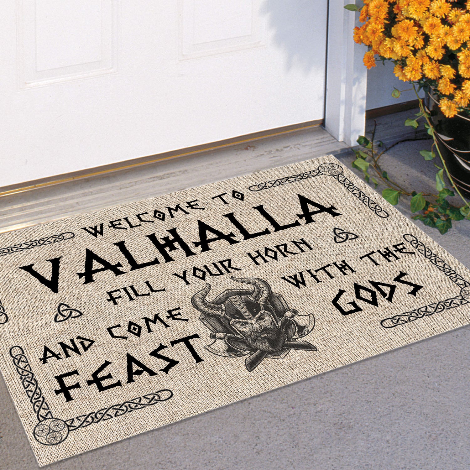Let’s Shop Welcome to Valhalla Fill Your Horn Viking Outdoor Indoor Doormat – Viking Rug Door Mat Housewarming Gift!