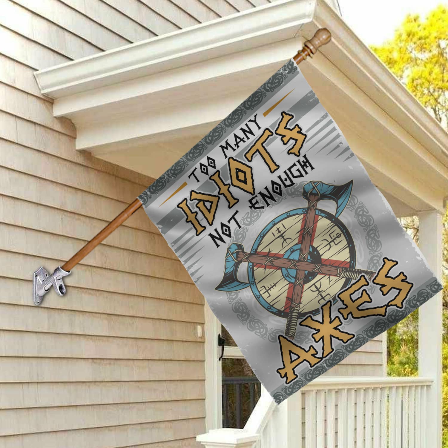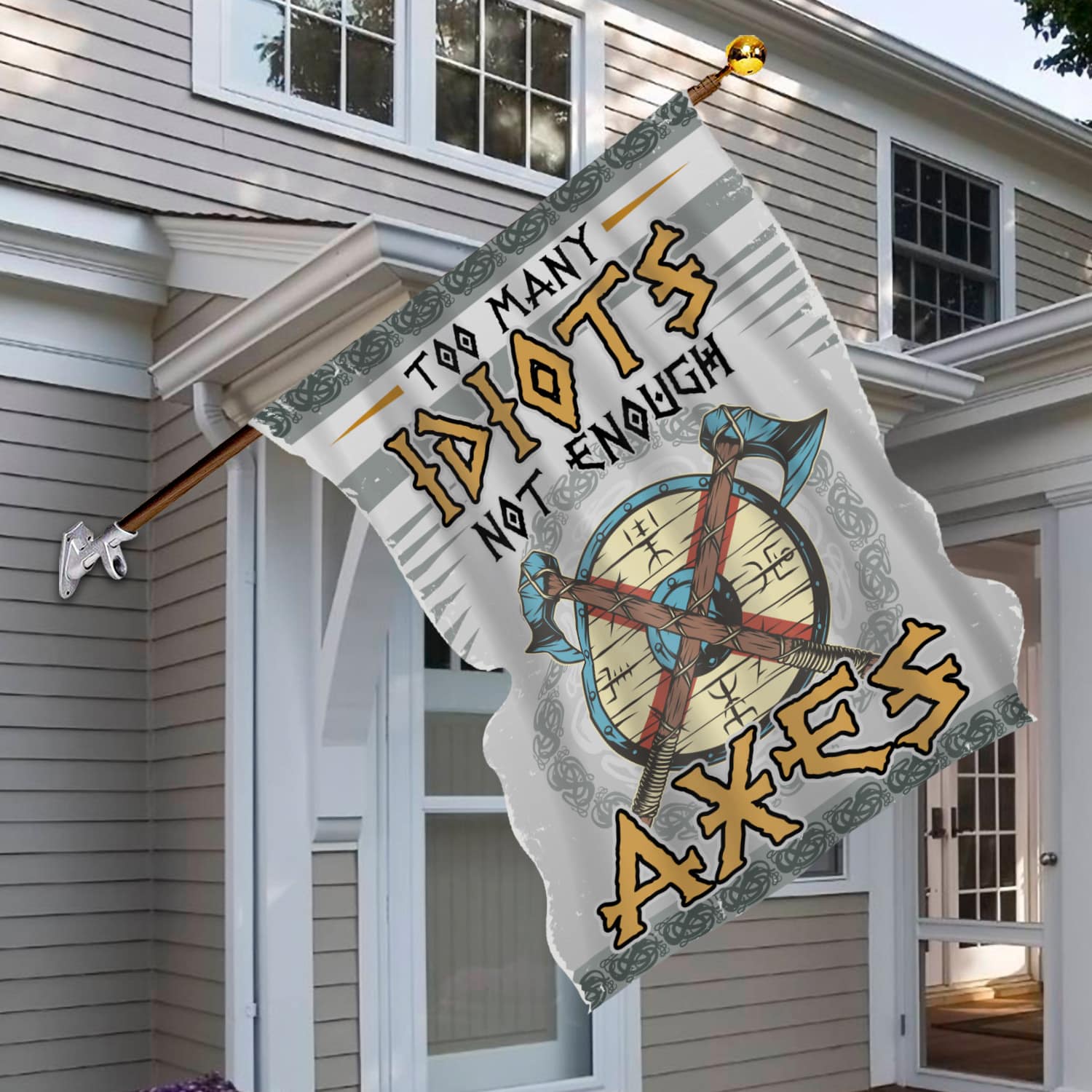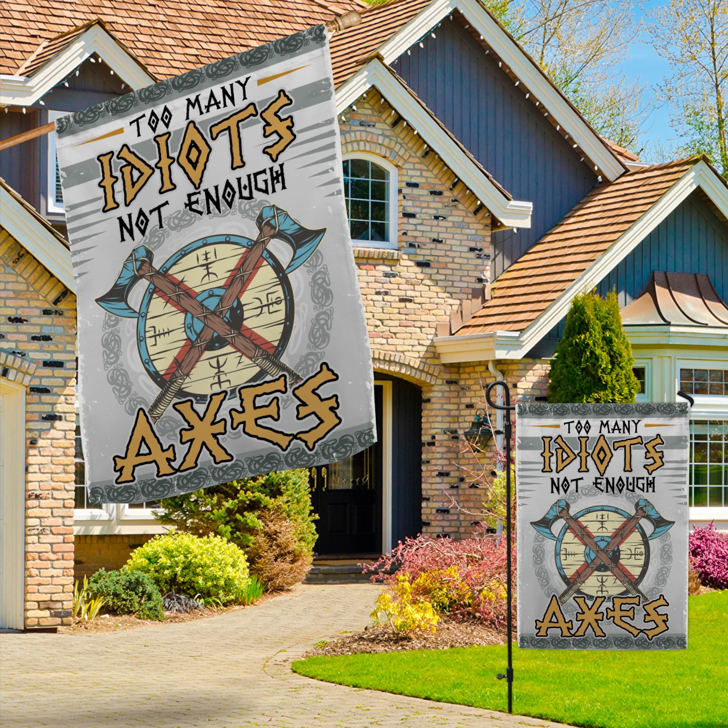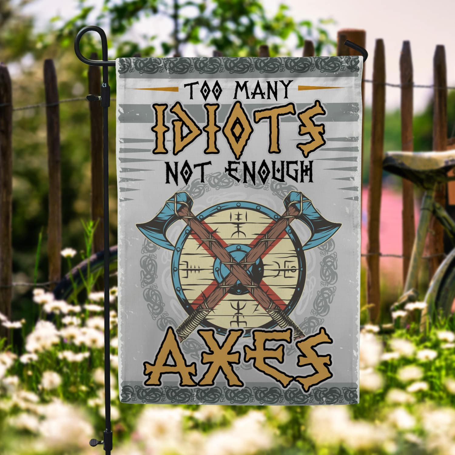 Let’s Shop Too Many Idiots Not Enough Axes Garden Flag – House Flag – Viking Flag!