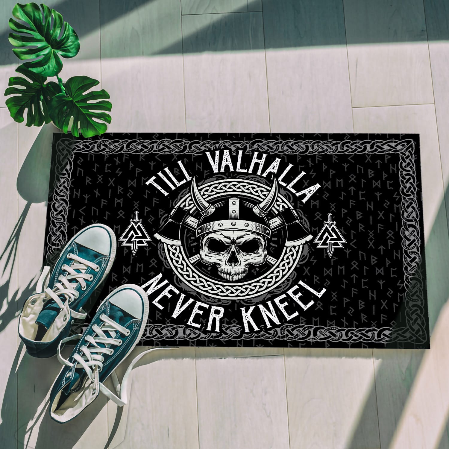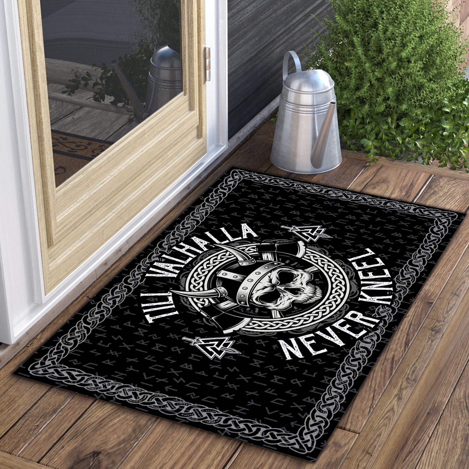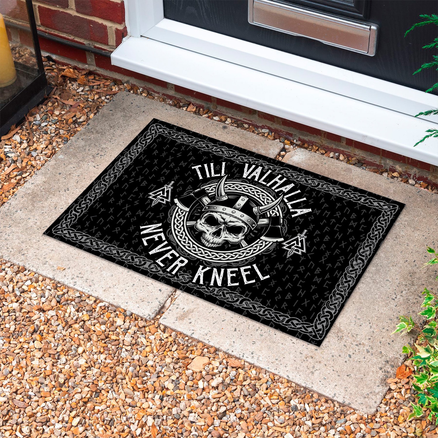 Let’s Shop Till Valhalla Never Kneel Indoor Outdoor Decorative Doormat – Viking Quote Doormat!