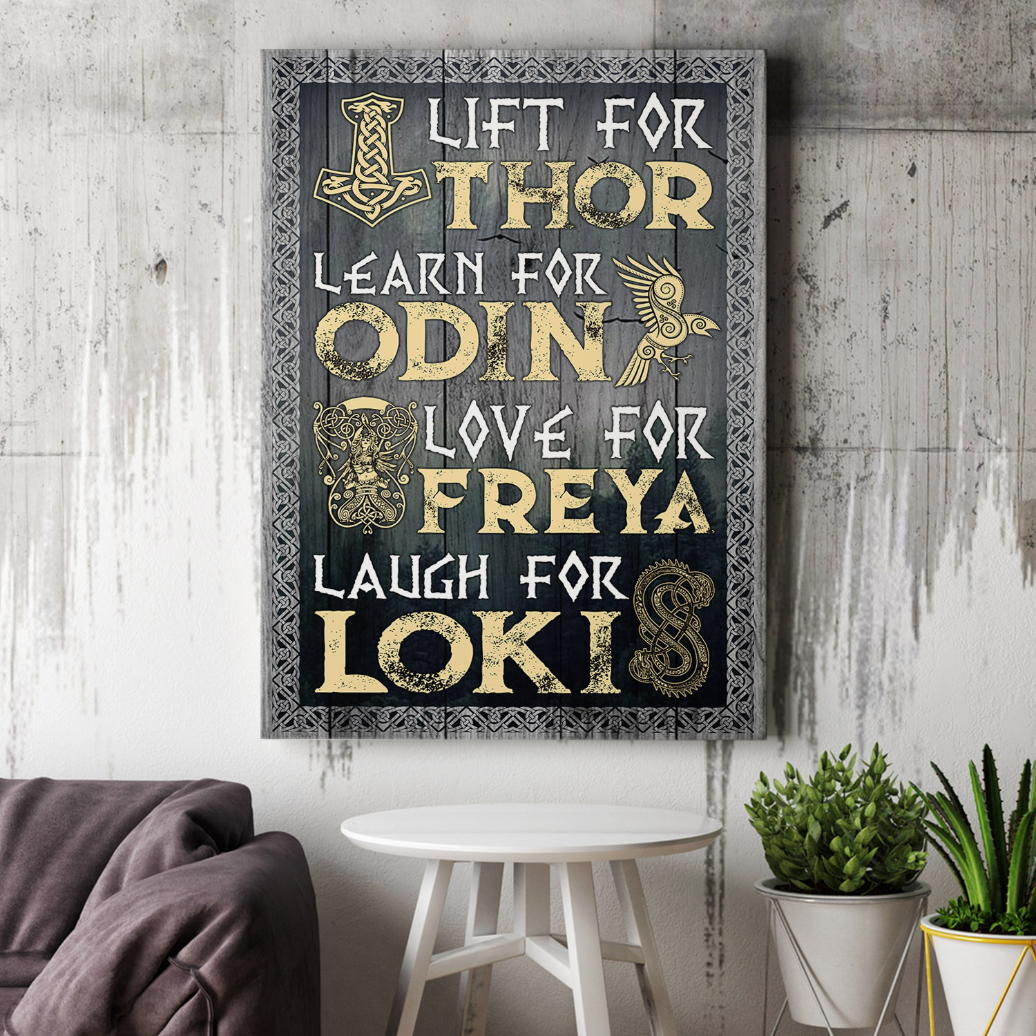 Lift for Thor Learn for Odin Love for Freya Laugh for Loki Framed Canvas – Unframed Poster – Home Decor Wall Art
