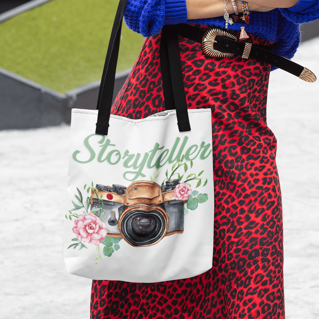 Let’s Shop Storyteller Vintage Camera Floral All Over Print Tote Bag – Shoulder Bag – Reusable Grocery Shopping Bag!