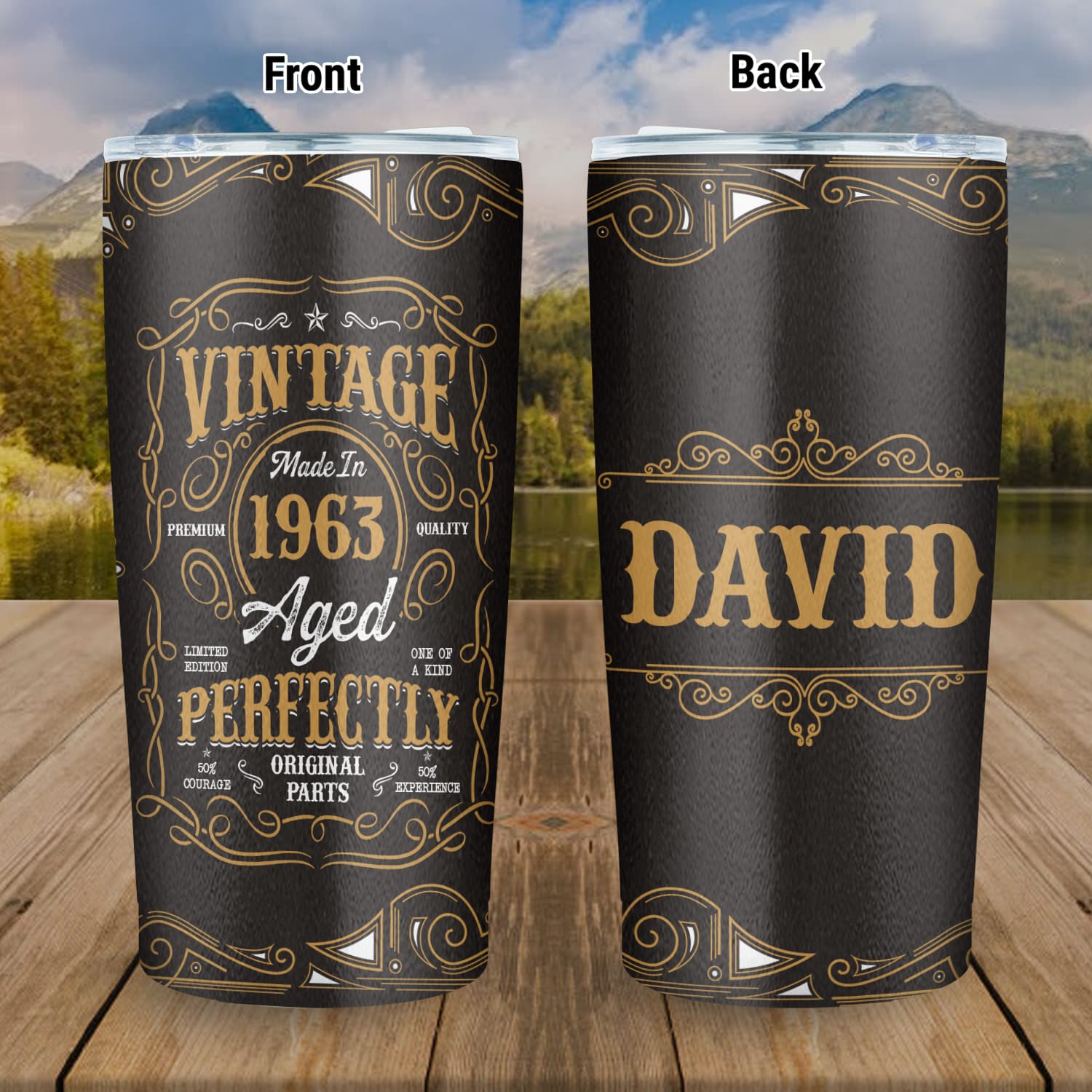 Personalized Age Vintage 70th 60th 50th 40th 30th Birthday Insulated Tumbler Cup Vintage Made In Aged To Perfection Mug