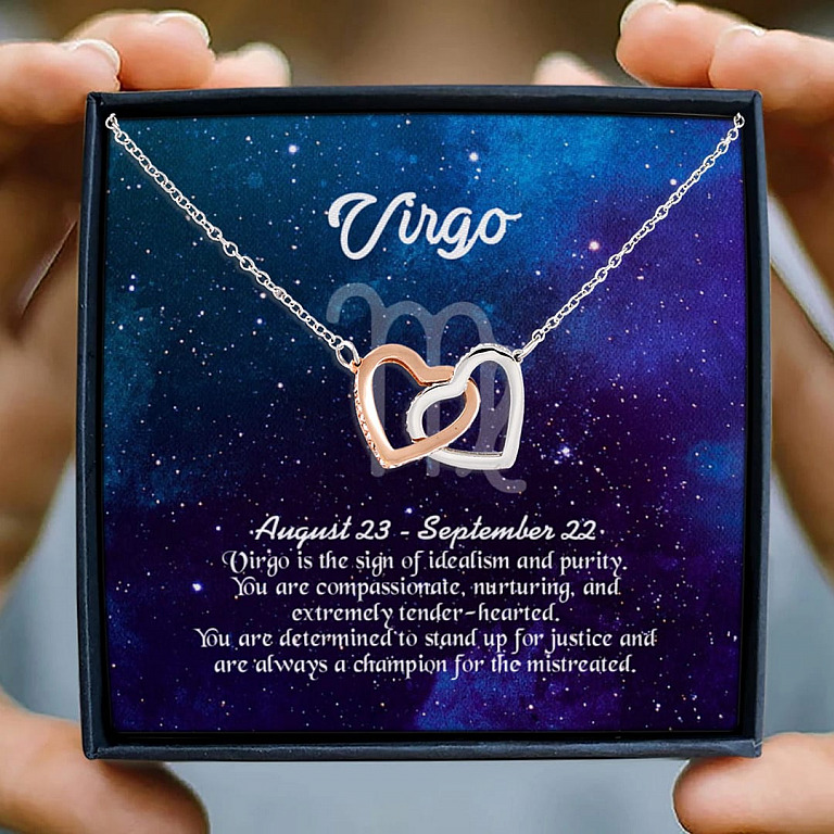 Let’s Shop Virgo Sign Constellation Horoscope Zodiac Birthday Astrology Joined Interlocking Hearts Pendant Necklace!