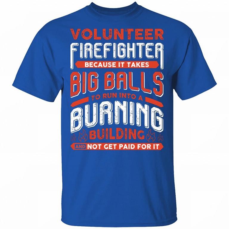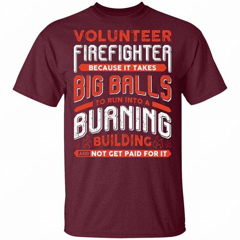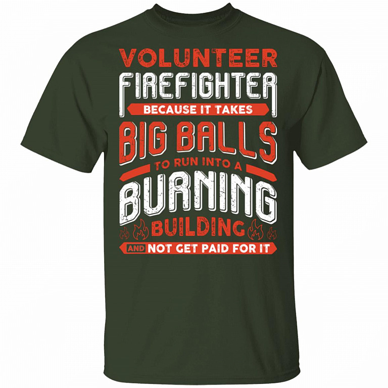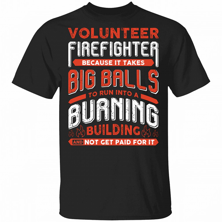 Volunteer Firefighter Because It Takes Big Balls to Run Into A Burning Building Funny T-Shirt