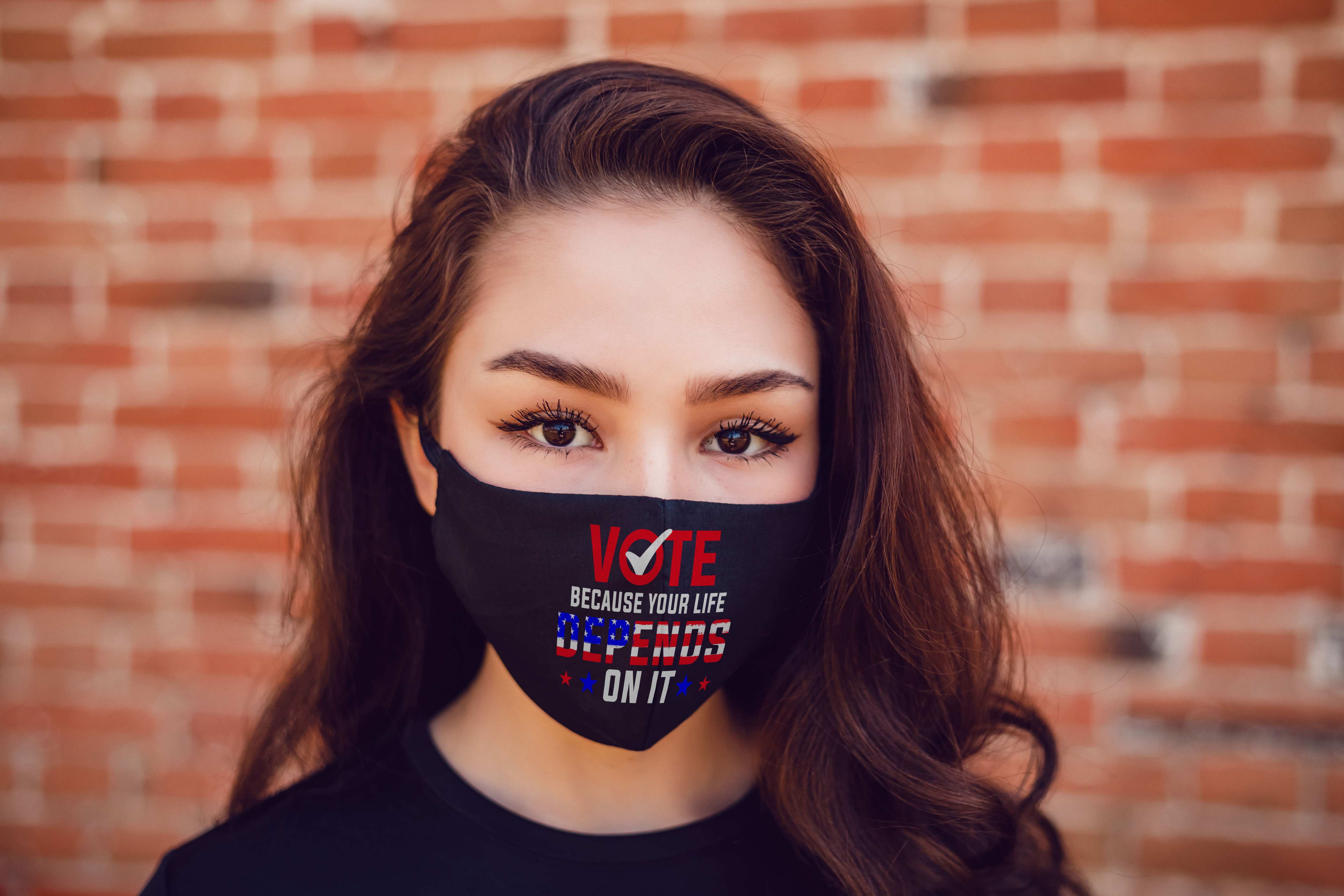 Shop Vote Because Your Life Depends On It Washable Reusable Custom – Printed Cloth Face Mask Cover.