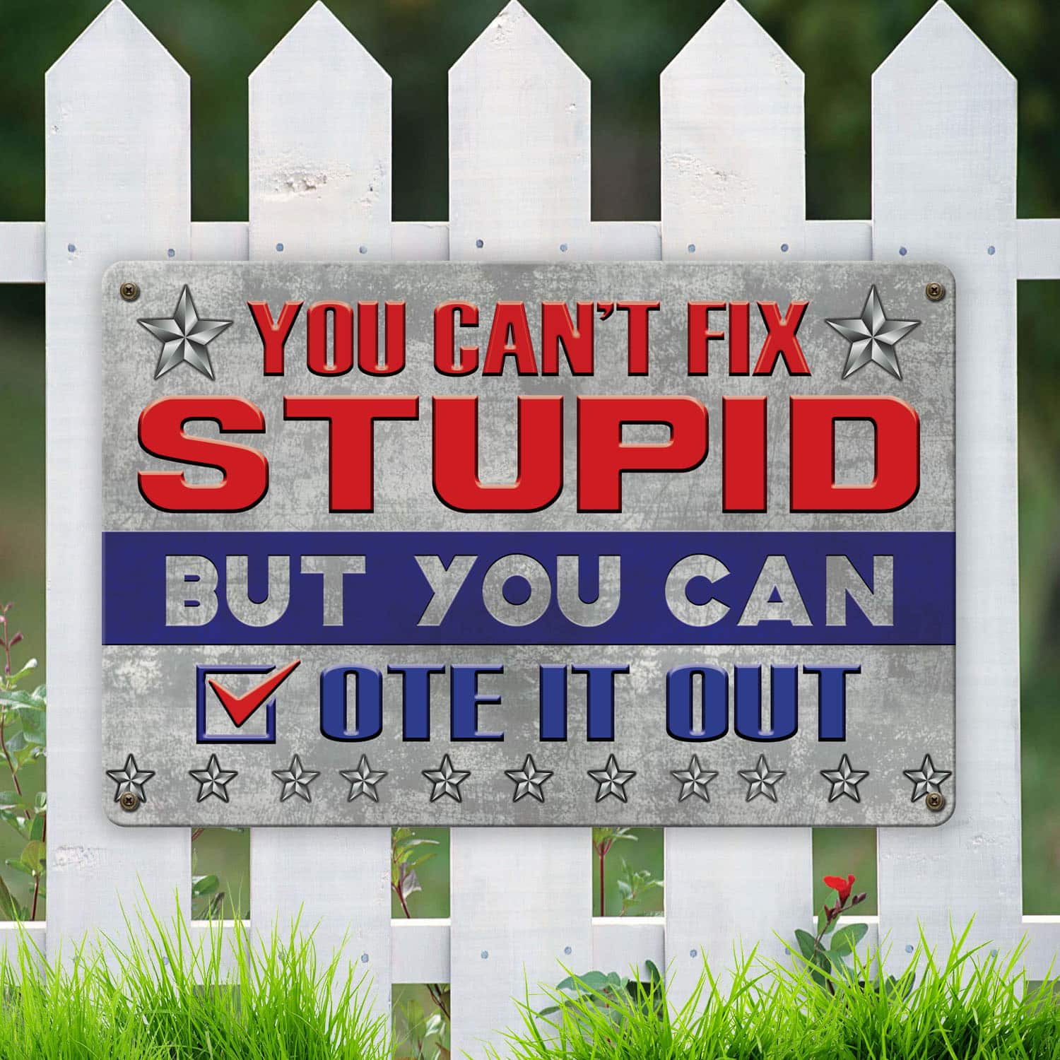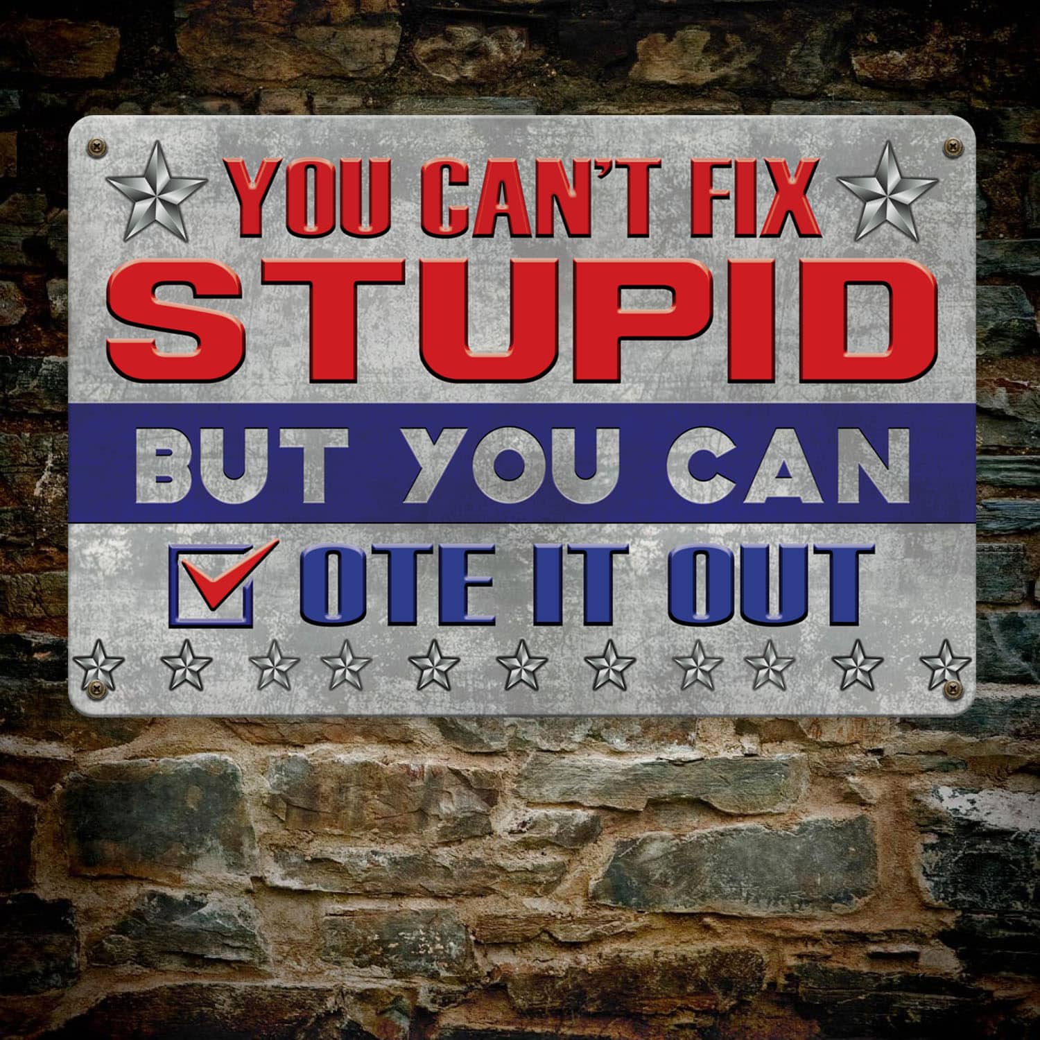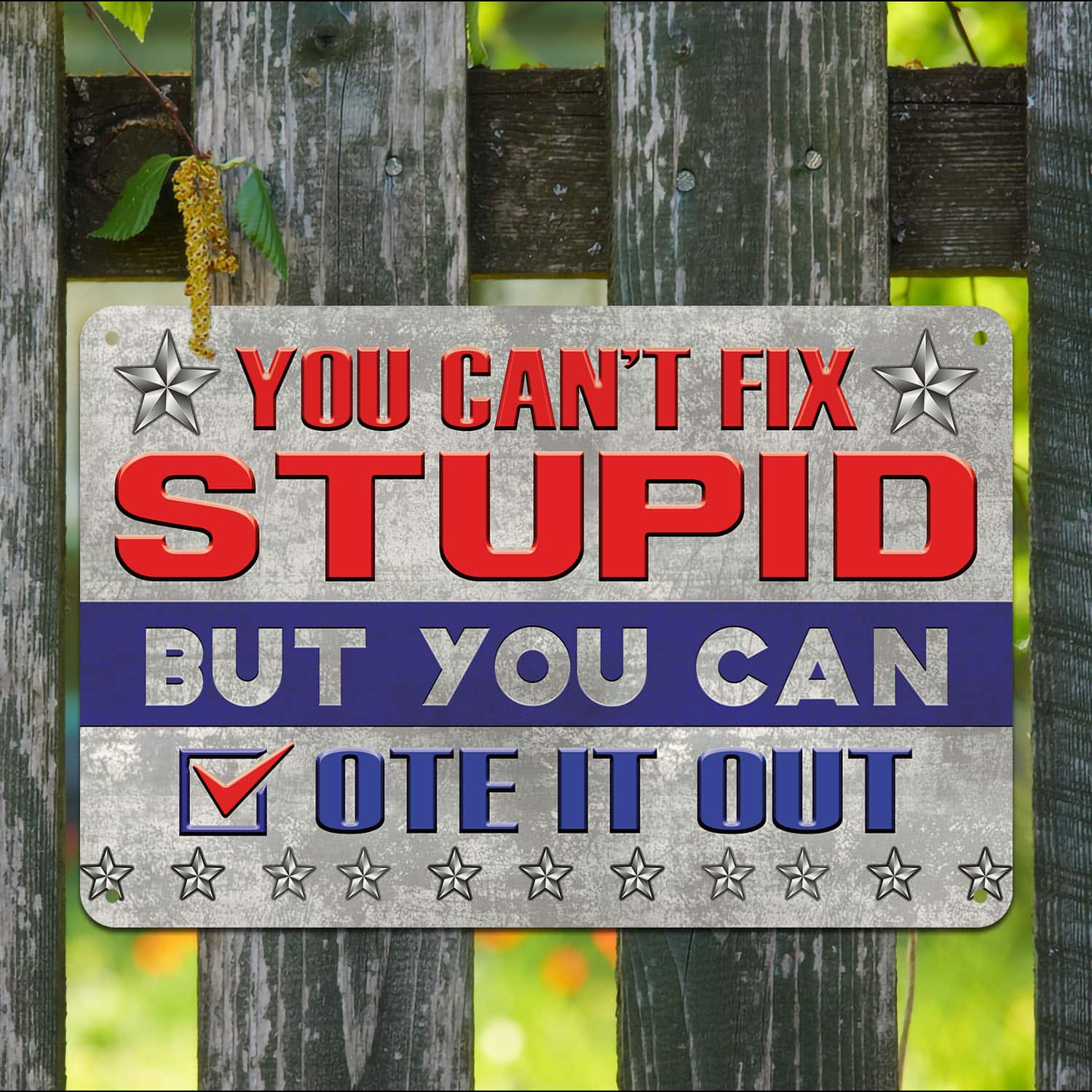Let’s Shop You Can’t Fix Stupid But You Can Vote It Out Trump Metal Sign – Indoor Outdoor Decor Political Election Sign!