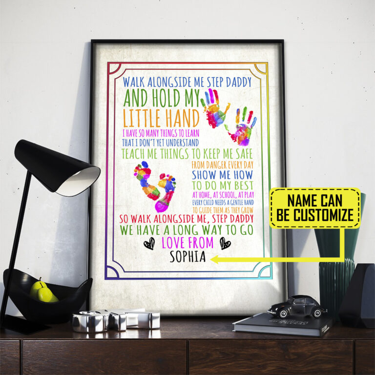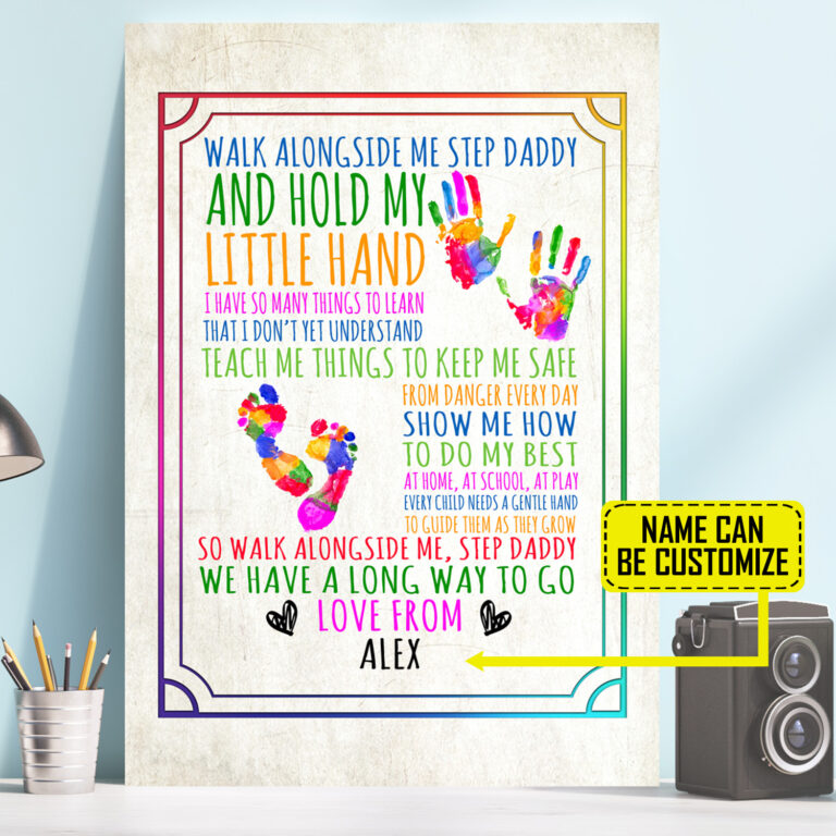 Are you spending too much time to find creative merchandise for you or suitable & special gifts for your mommy, your daddy, your son, your daughter, your children, your friends or someone you love? The struggle is over because we have various Personalized Walk Alongside Me Step Daddy Wrapped Framed Canvas Prints – Unframed Poster, Step Father Gifts, Stepdad Poster, Stepdad Canvas, Bonus Dad Poster, Bonus Dad Canvas, Stepfather Poster, Stepfather Canvas, Bonus Father Poster, Bonus Father Canvas, Hand And Feet Poem Gift which will make perfect presents for your beloveds. In order to make your present stand out, we have created lots of unique and awesome customized photo gifts & personalized designs.
