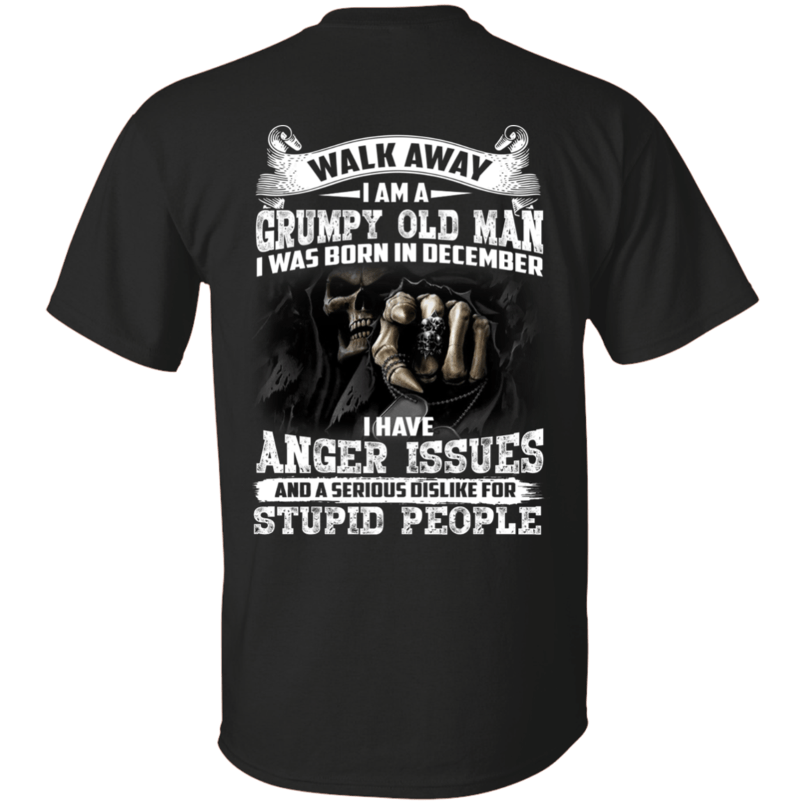 Walk Away I Am A Grumpy Old Man I was Born in December I Have Anger Issue Print On Back T-Shirt