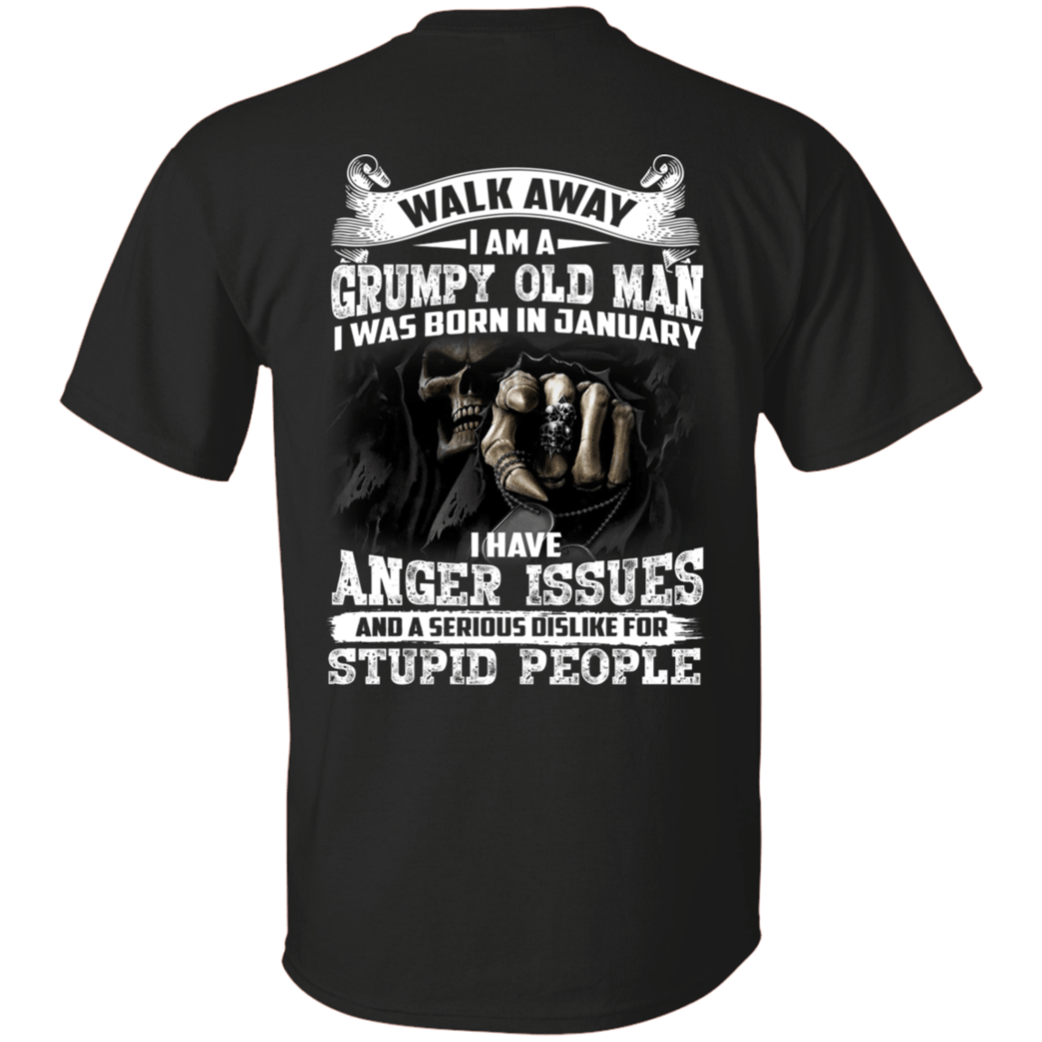 Walk Away I Am A Grumpy Old Man I was Born in January I Have Anger Issue Print On Back T-Shirt
