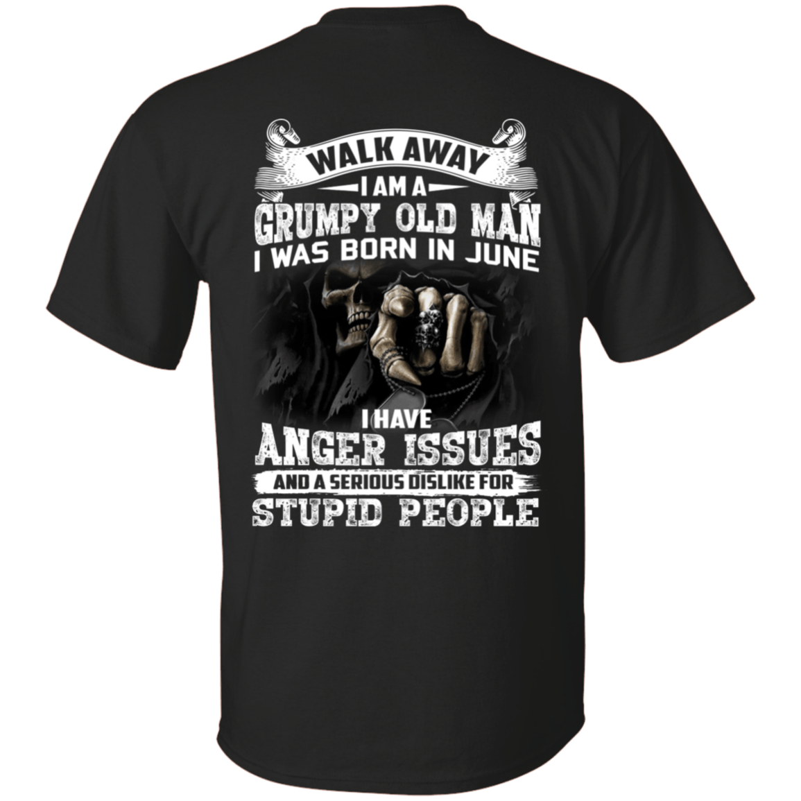 Walk Away I Am A Grumpy Old Man I was Born in June I Have Anger Issue Print On Back T-Shirt