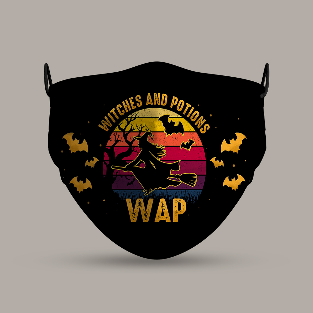 Let’s Shop Witches And Potions WAP Funny Witch Halloween Vintage Washable Reusable Custom – Printed Cloth Face Mask Cover!