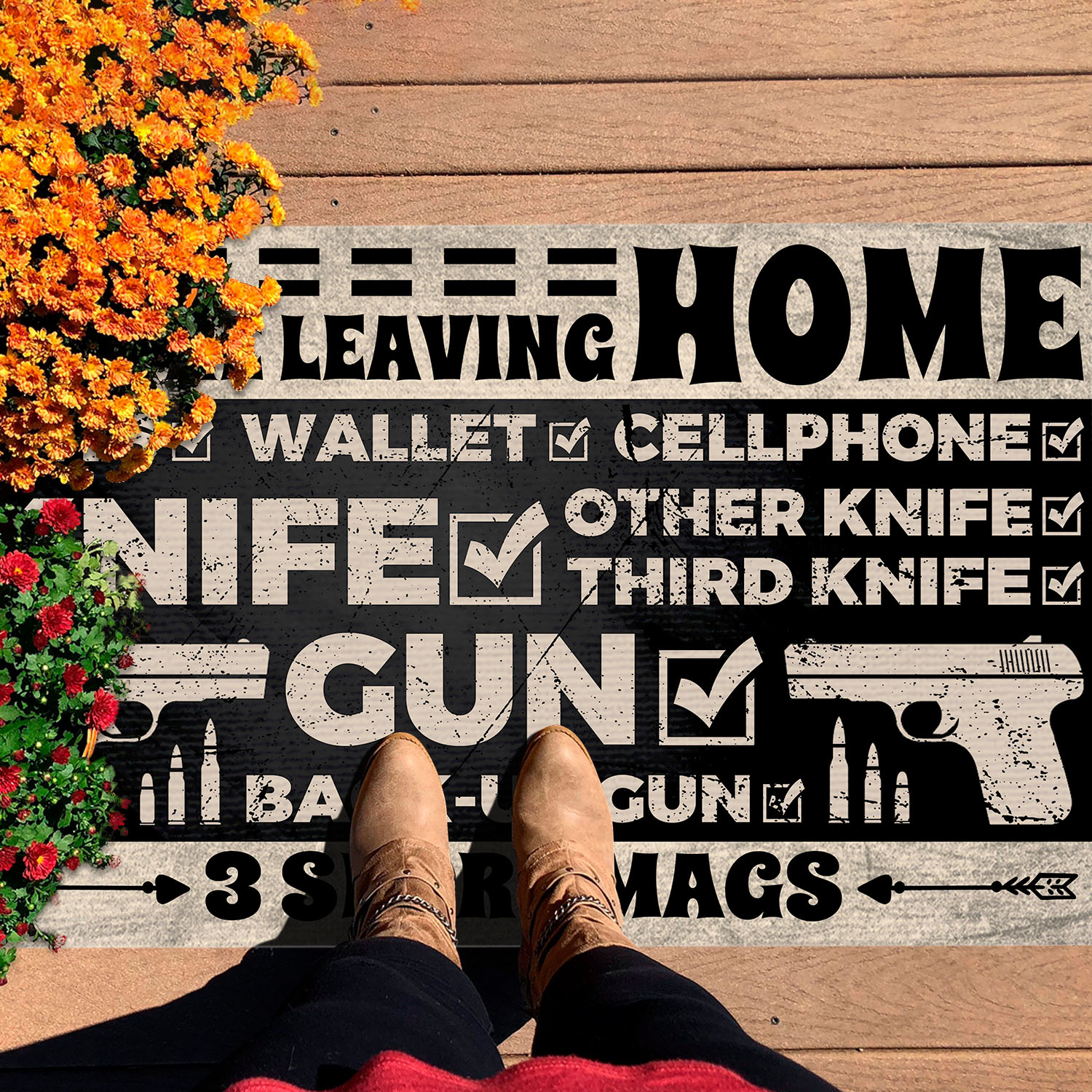 Are you spending too much time to find creative merchandise for you or suitable & special gifts for your mommy, your daddy, your son, your daughter, your children, your friends or someone you love? The struggle is over because we have various Before Leaving Home Keys Wallet Cellphone, Before Leaving Home Doormat, Funny Welcome Rug, Funny Welcome Doormat, Funny Carpet, Welcome Carpet, Front Door Mats, Entry Carpet, Entrance Rug, Funny Entryway Door Rug, Entrance Mat for Home, Humorous Funny Doormat, Warm House Gift, Welcome Mat Gift which will make perfect presents for your beloveds. In order to make your present stand out, we have created lots of unique and awesome customized photo gifts & personalized designs.