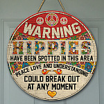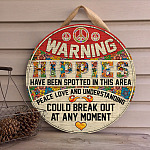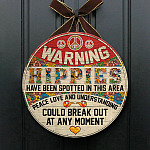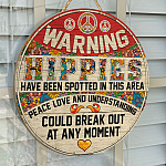 Let’s Shop Warning Hippies Have Been Spotted in This Area Decorative Circle Wooden Door Sign – Front Porch Sign Outdoor Decor!