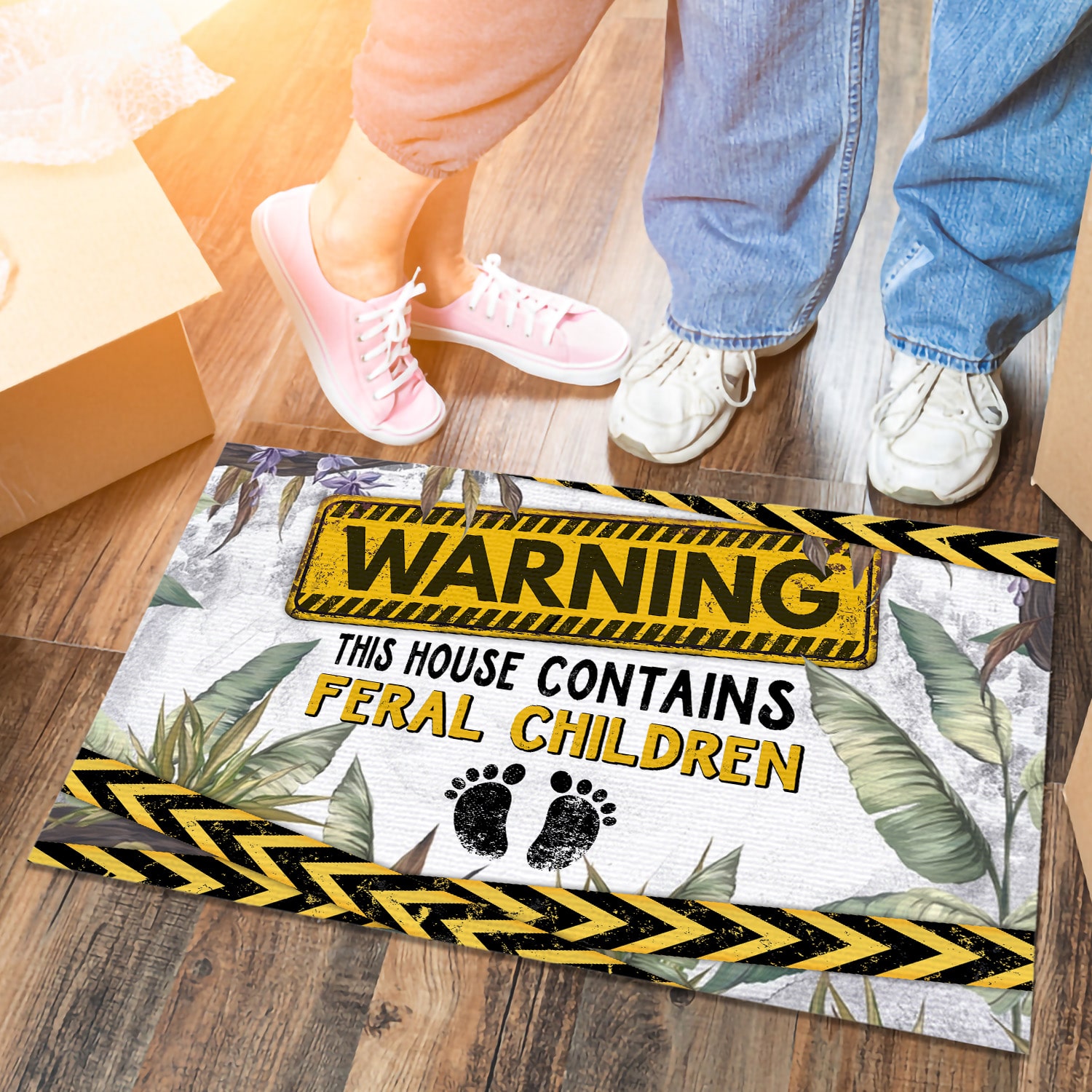 Let’s Shop Warning This House Contains Feral Children Funny Entrance Indoor Outdoor Decorative Doormat!