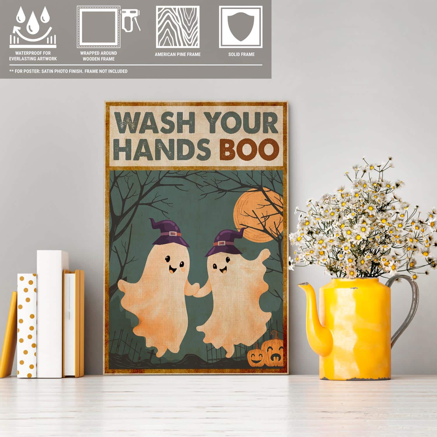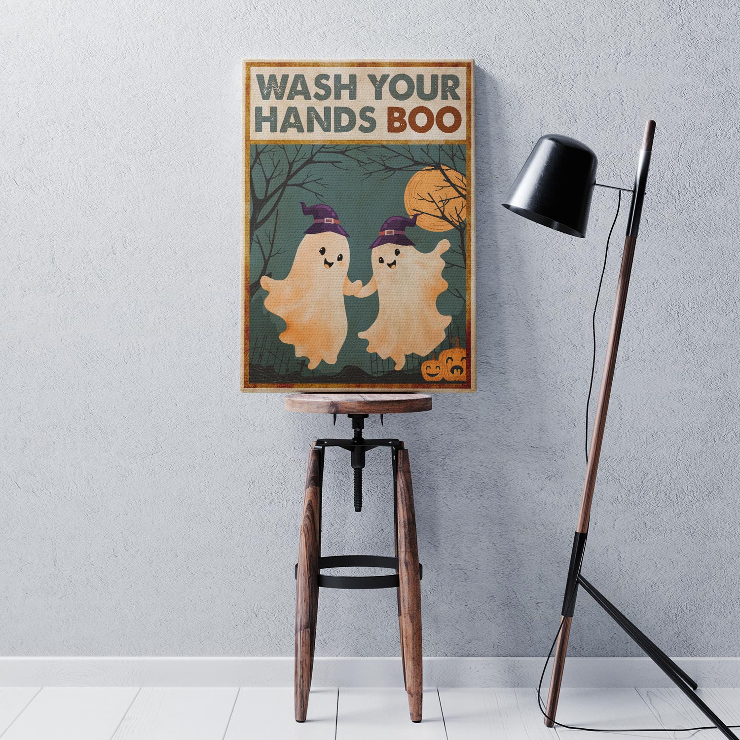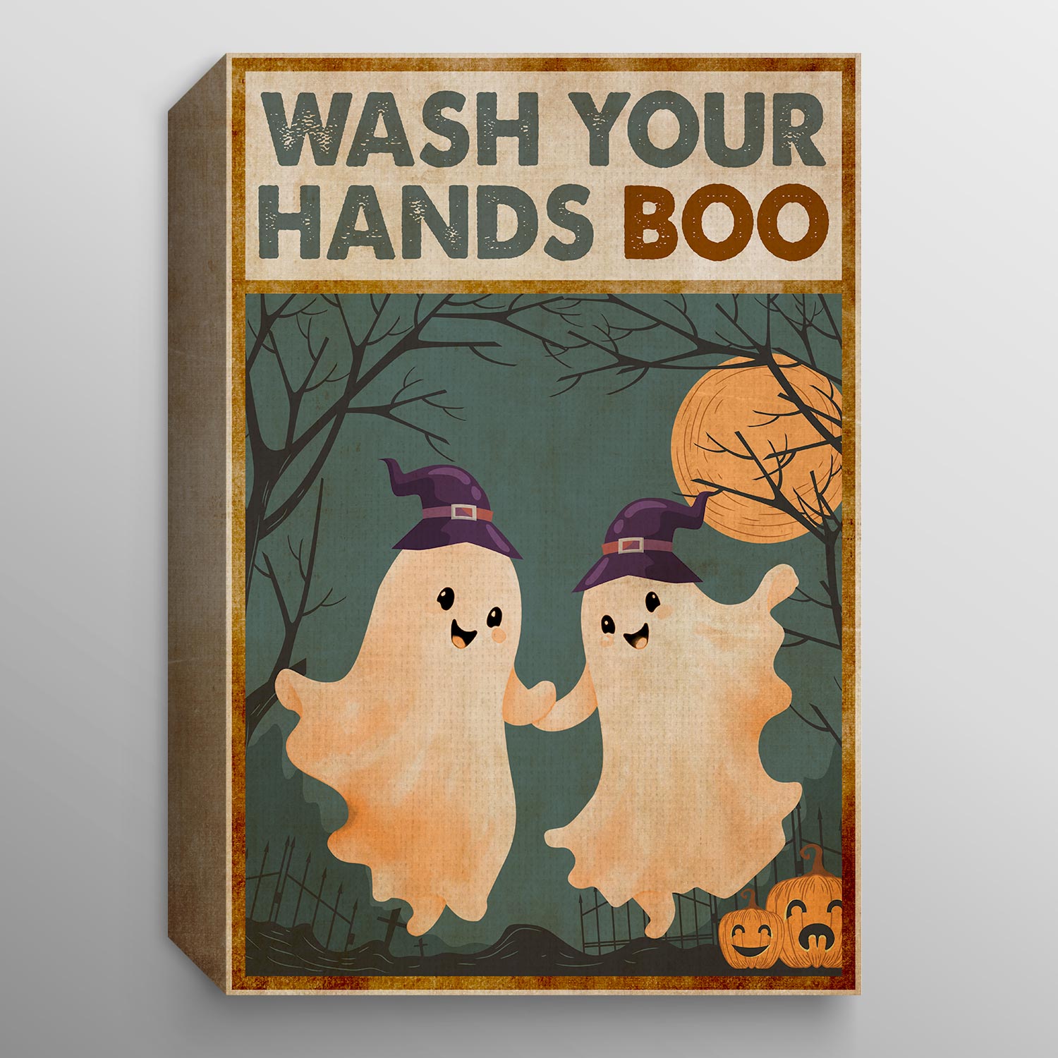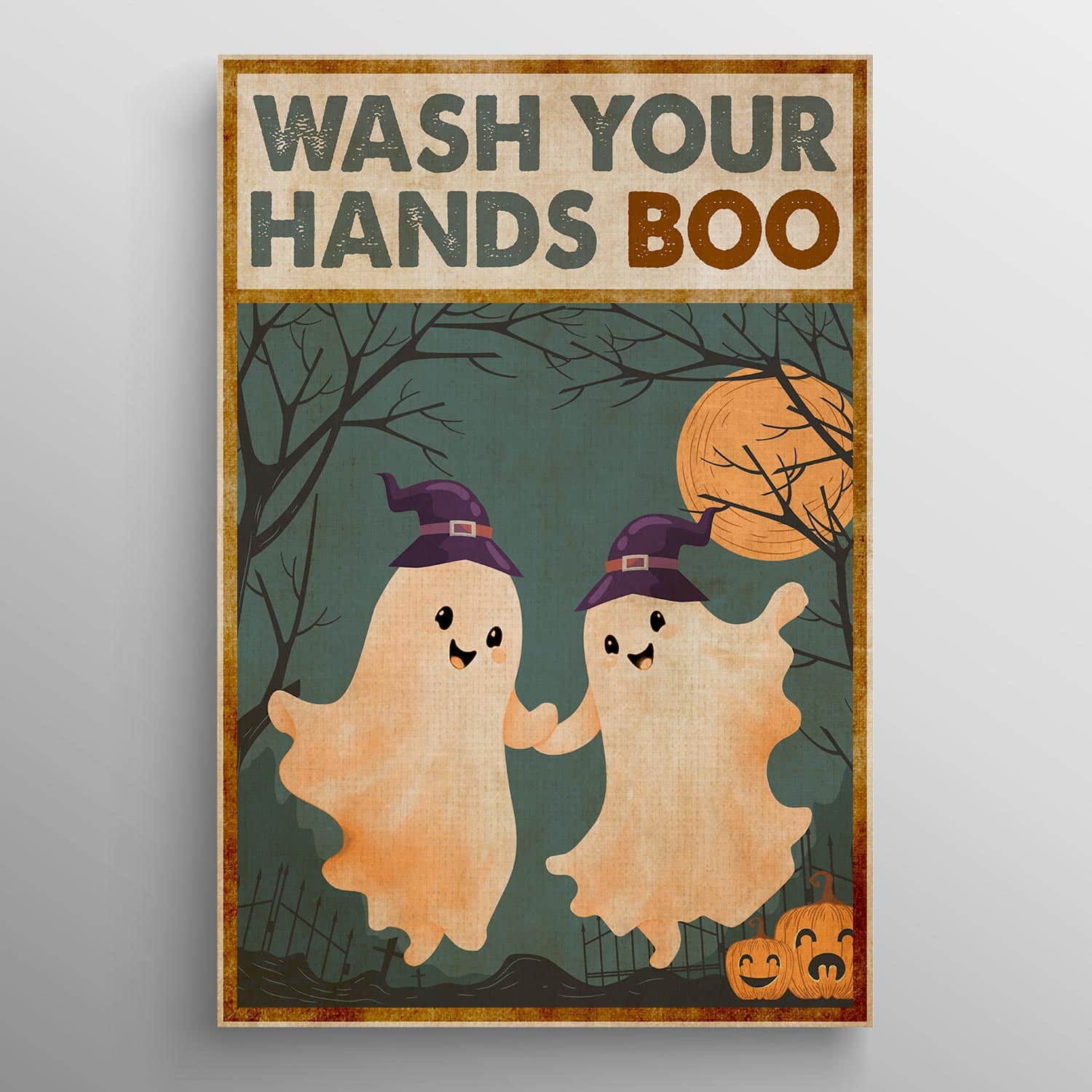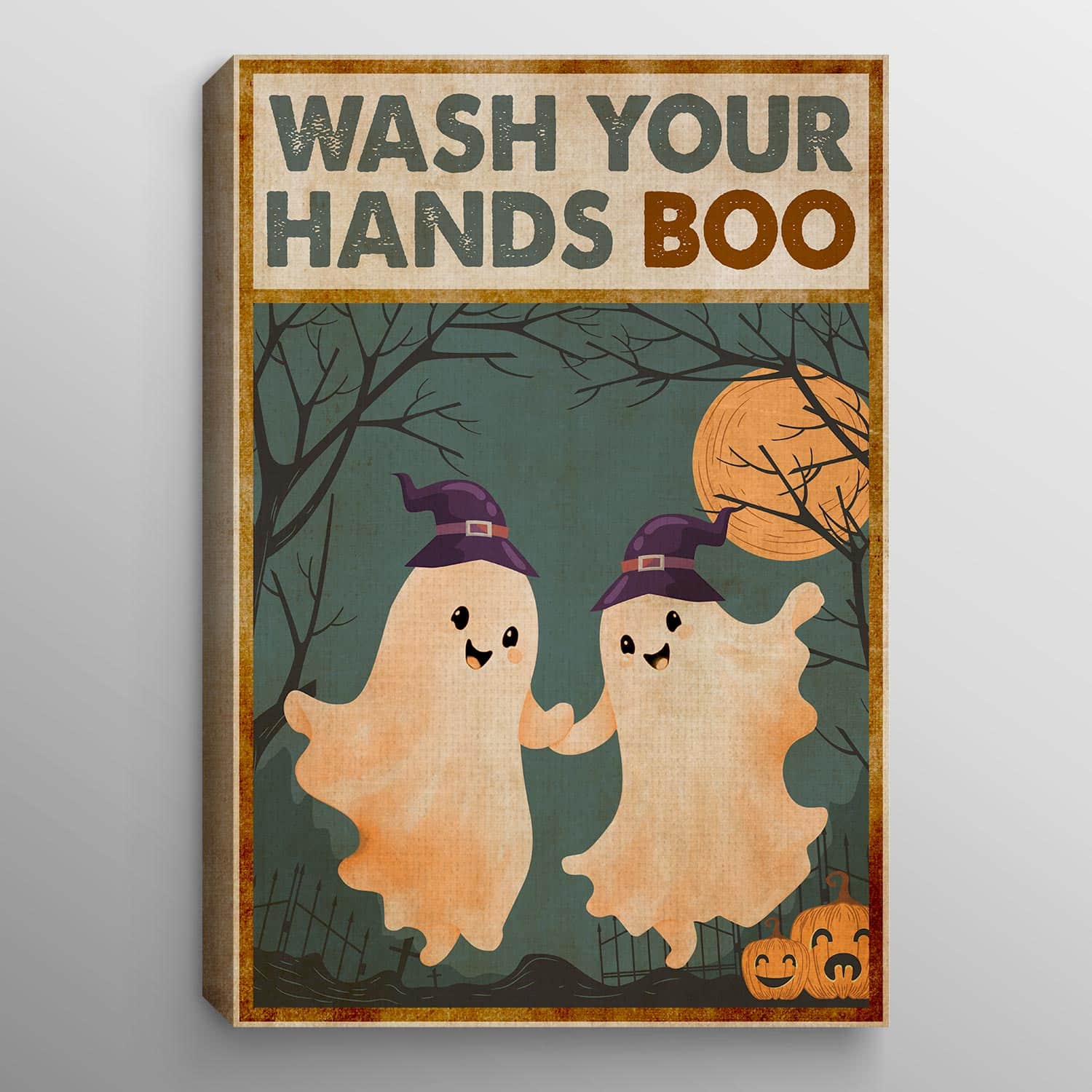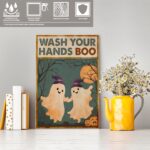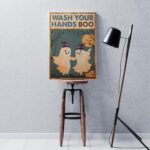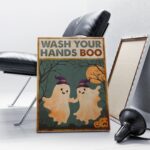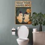 Let’s Shop Wash Your Hands Boo Funny Bathroom Halloween Boo Ghost Couple Framed Canvas Print – Poster – Funny Bathroom Decor!