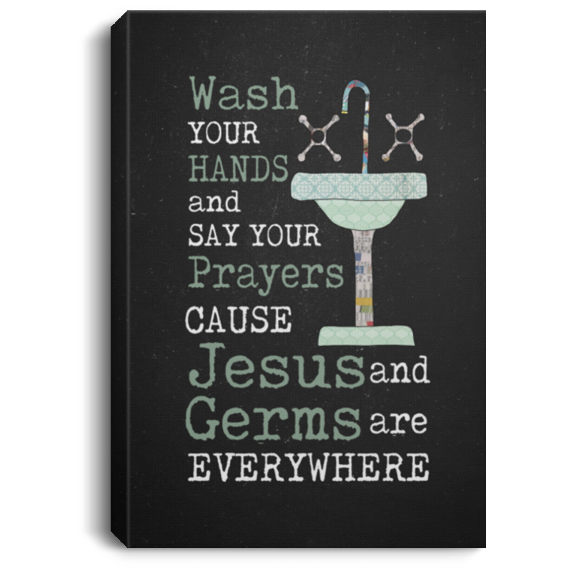 Wash Your Hands and Say Your Prayers Cause Jesus and Germs Are Everywhere Framed Canvas Prints – Unframed Poster