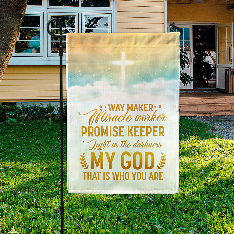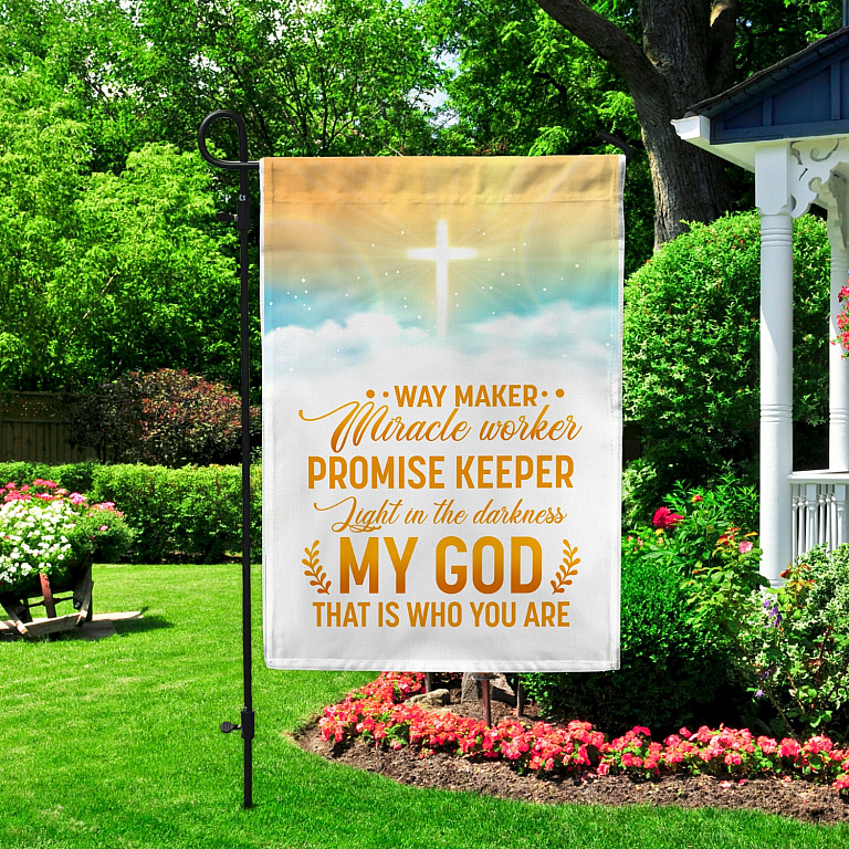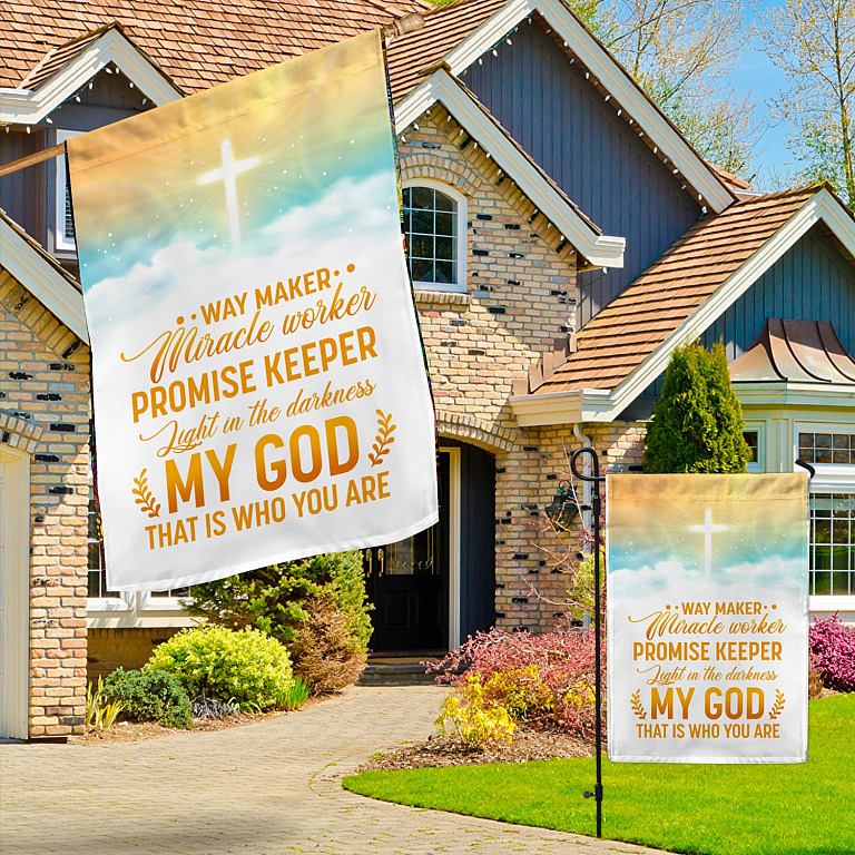Let’s Shop Way Maker Miracle Worker Promise Keeper Light in The Darkness My God that Is Who You Are House Flag – God Garden Flag!