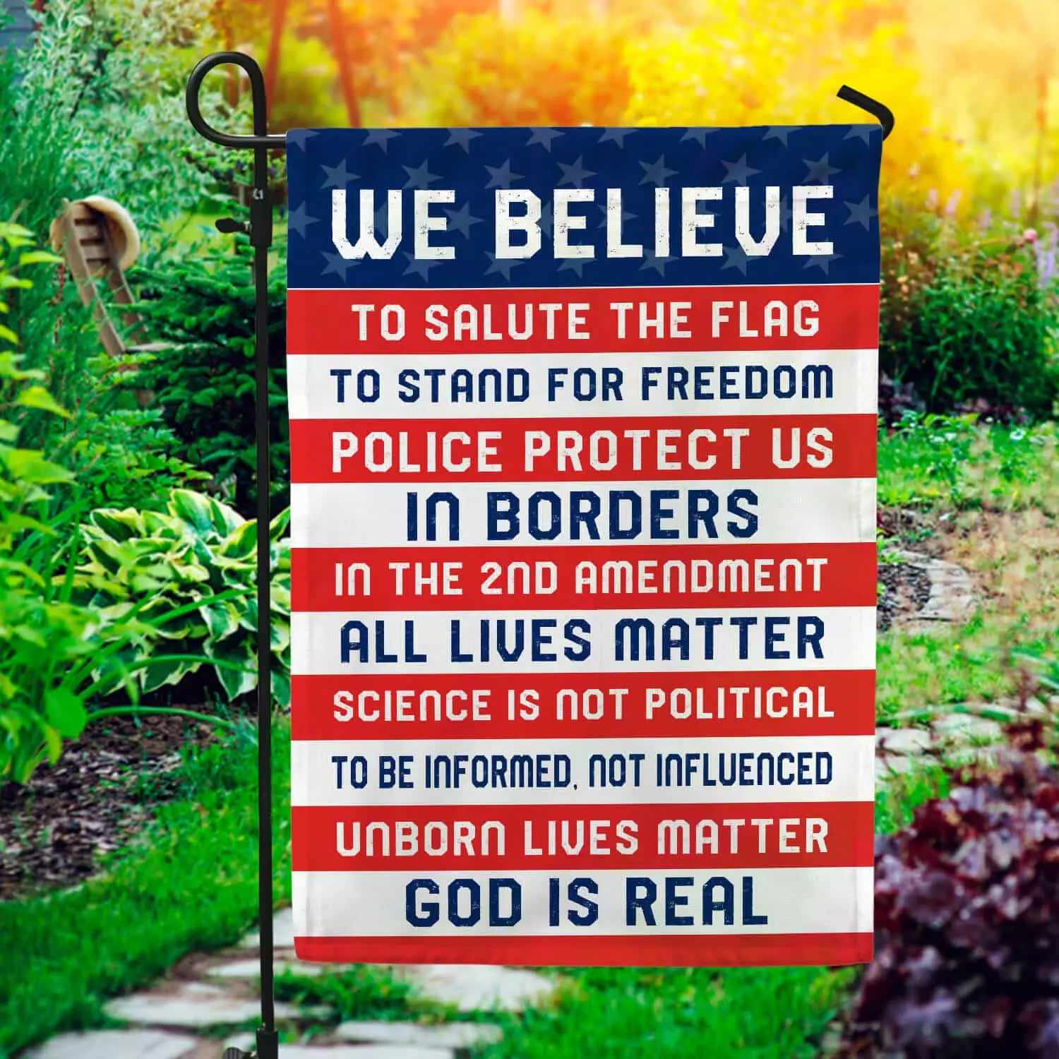 Let’s Shop We Believe Salute the Flag 2nd Amendment Unborn Lives Matter Flag – We Believe Conservative Garden Flag!